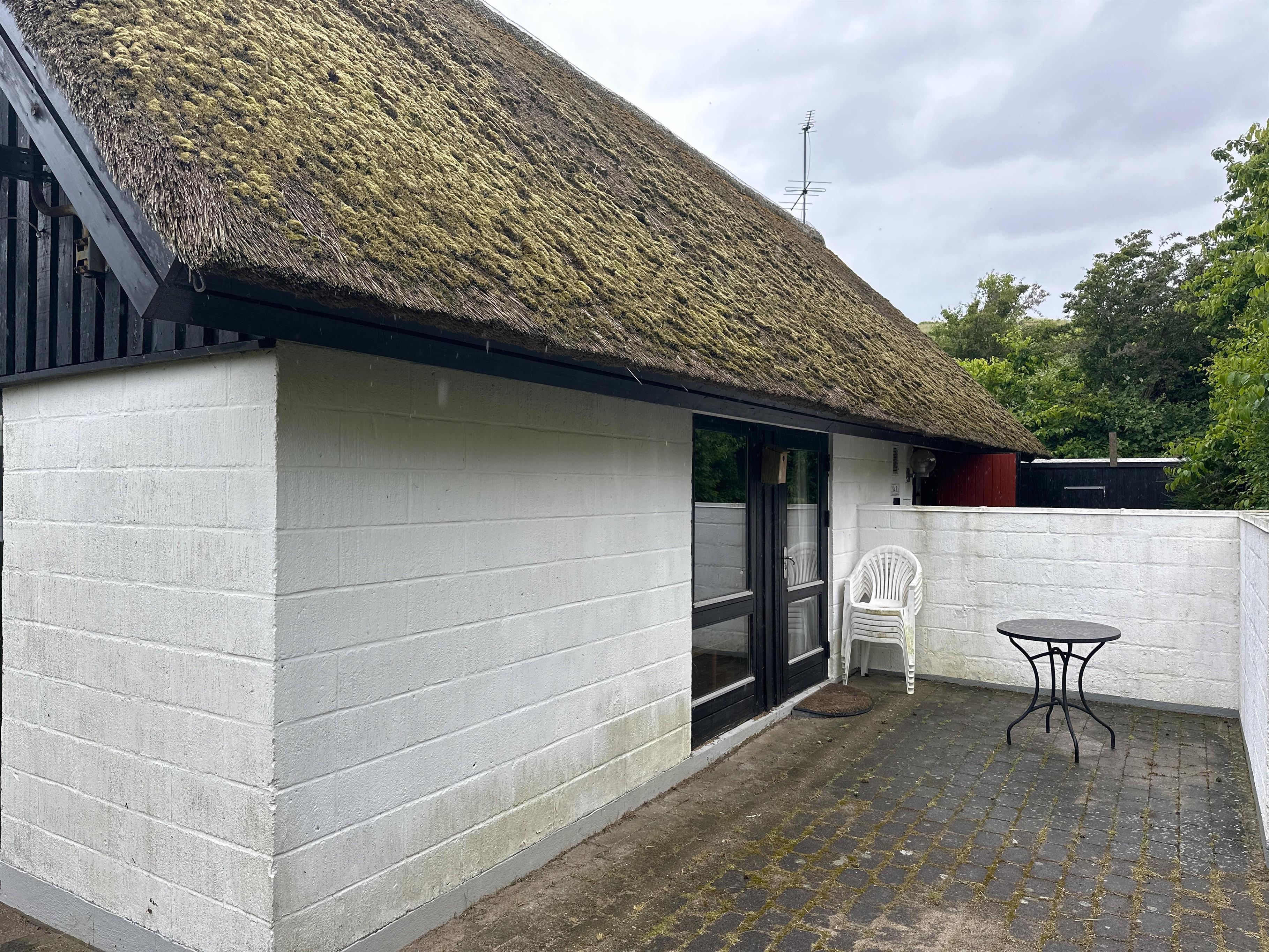 Udendørs kan du nyde solen på to skønne terrasser, hvor der både er plads til afslapning og udendørs spisning. Huset ligger på en stor naturgrund, og følger du den lille trappe op mellem træerne, venter et bord/bænkesæt med en skøn udsigt – et perfekt sted til morgenkaffen eller en stille stund i naturen.