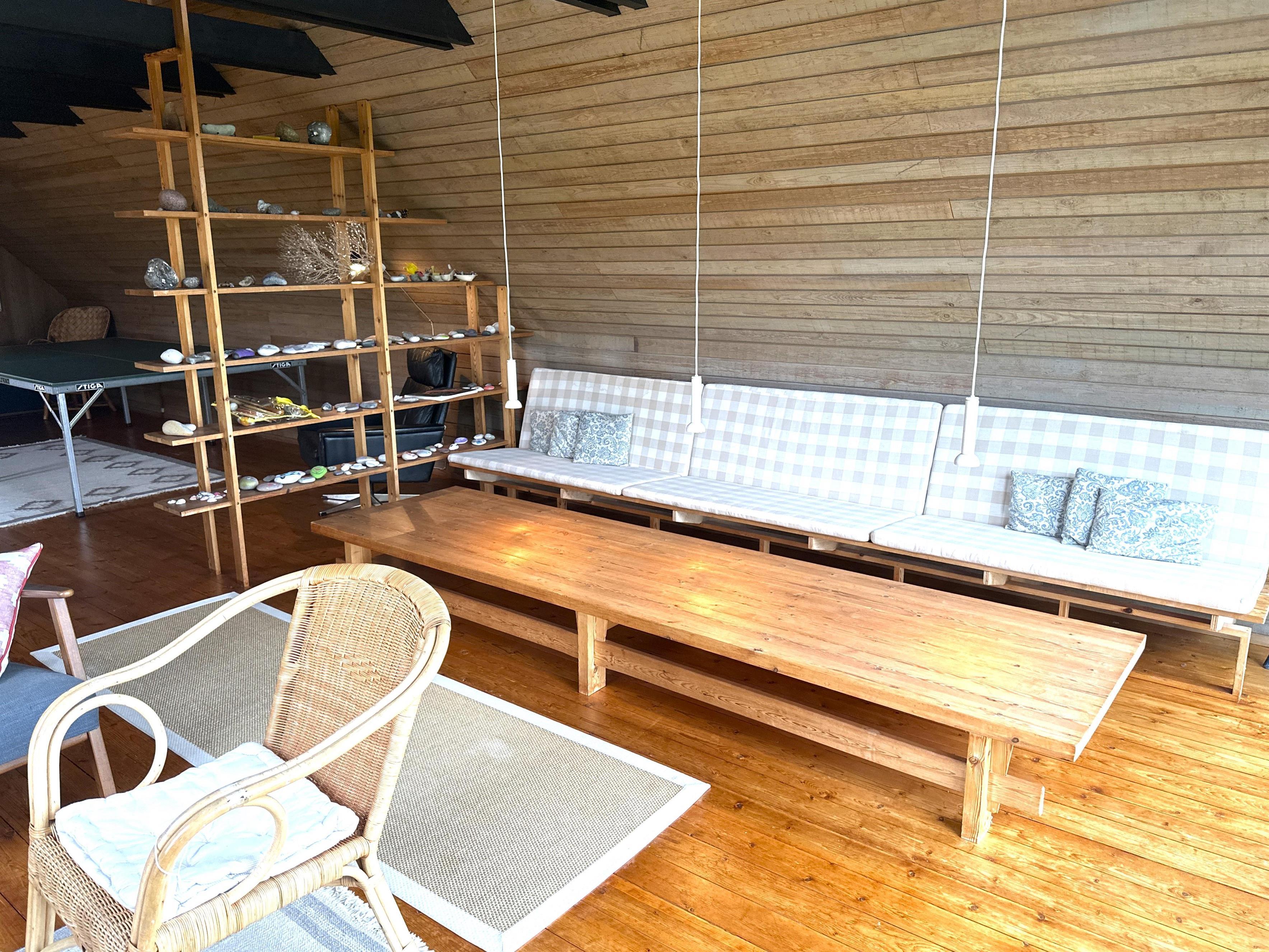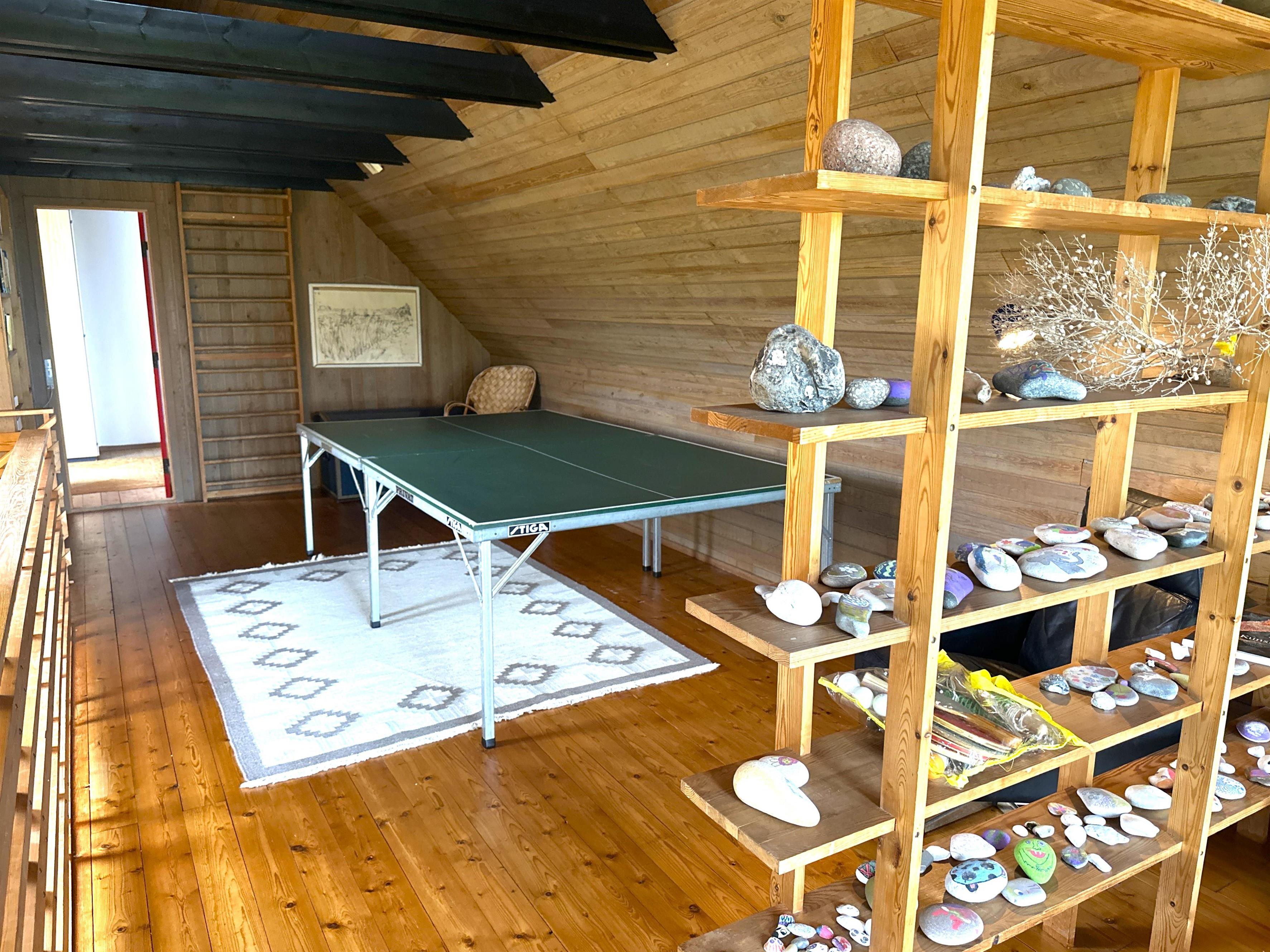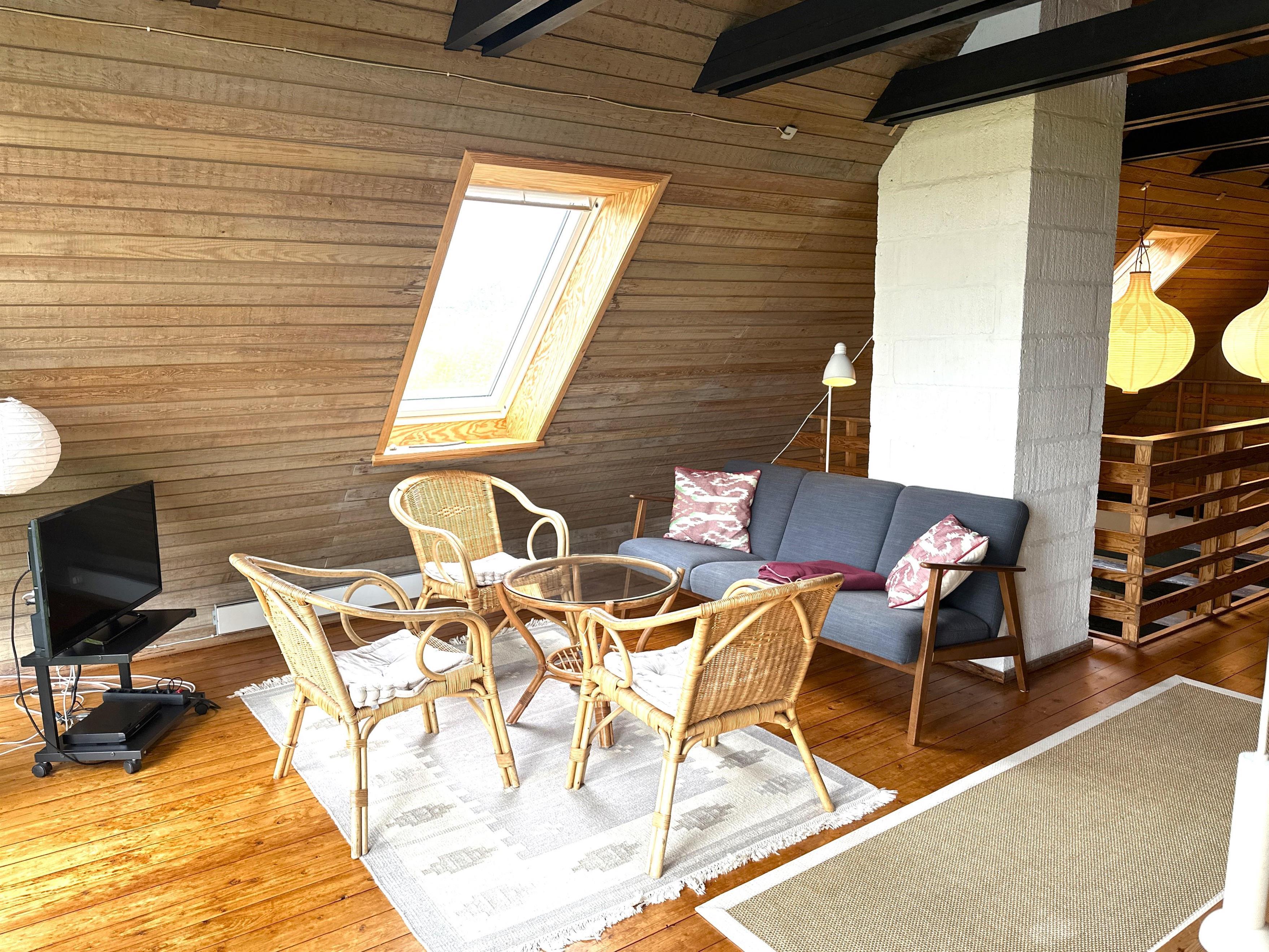 På første sal venter et charmerende, ombygget loftsrum med store vinduer og en smuk udsigt over landskabet. Her finder du både en hyggelig krog til afslapning og et bordtennisbord, som giver rig mulighed for sjove timer – uanset vejr og årstid. Derudover ligger der et ekstra soveværelse med tre enkeltsenge, perfekt til børn eller ekstra gæster.