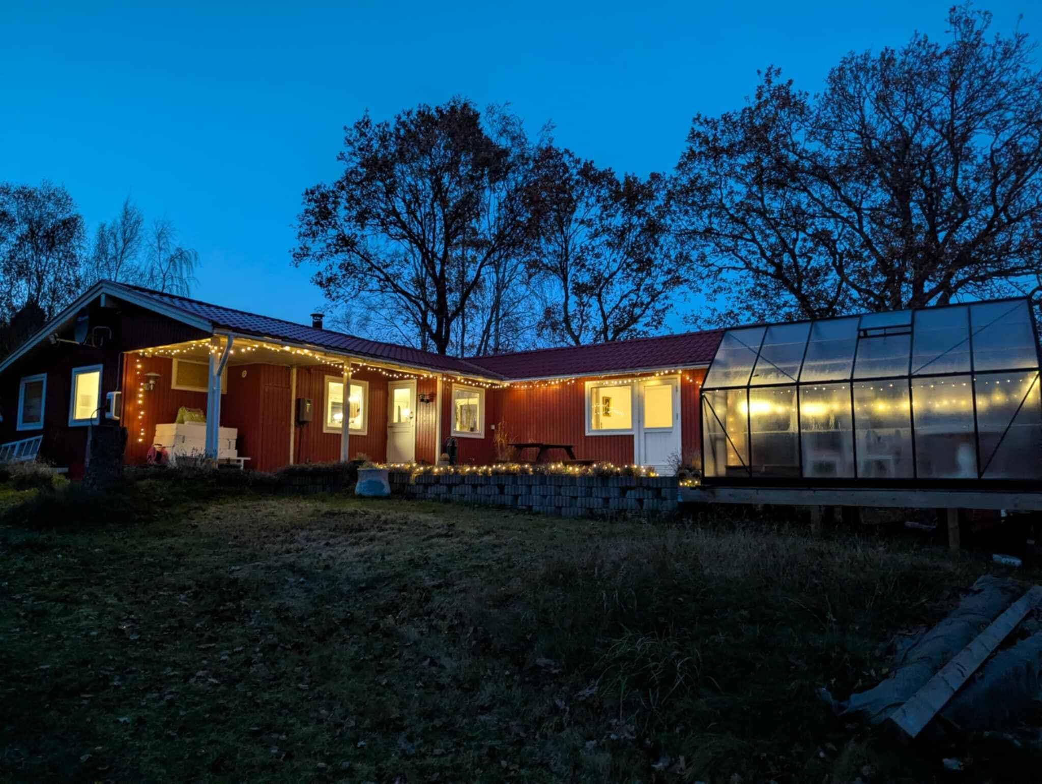 Hyggeligt svensk-inspireret sommerhus nær skov og kun 2,5 km fra kysten med privat baghave og moderne faciliteter.