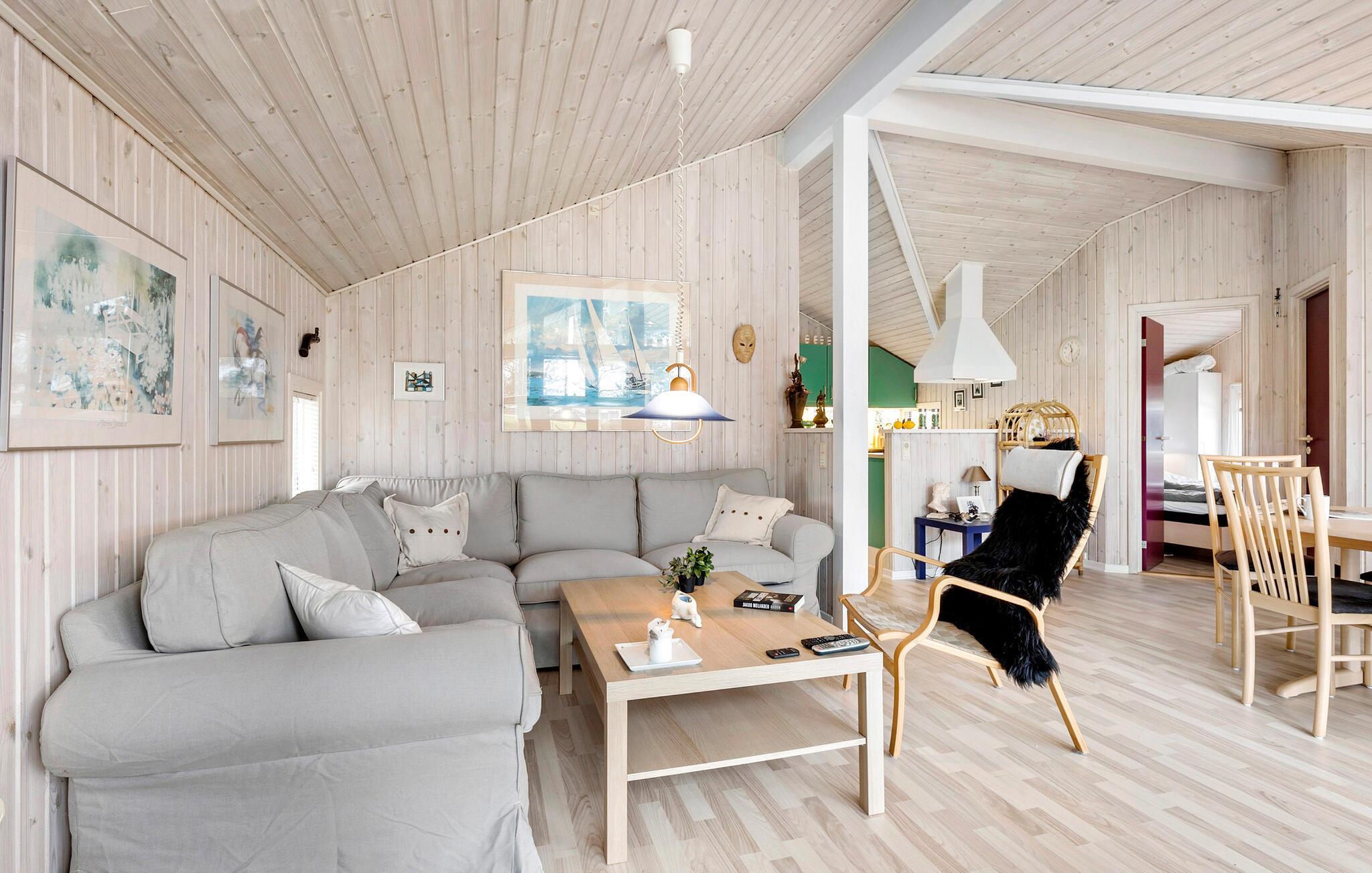 Charmerende træhus ved Jørgensø Strand med moderne faciliteter og hyggelig atmosfære.