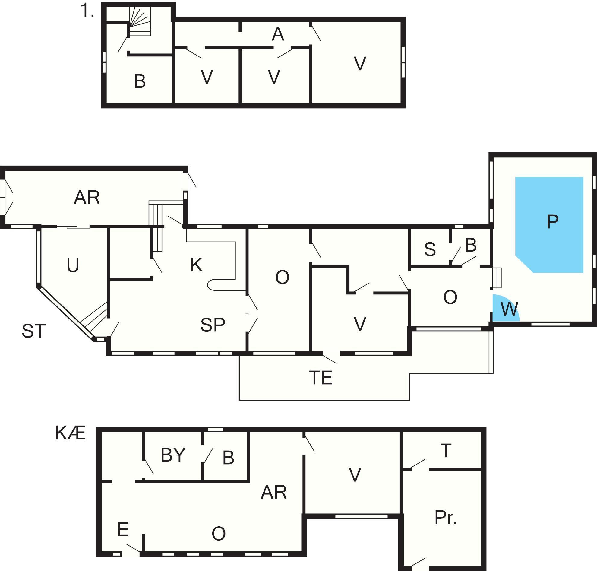 5 Soveværelser: (1DS)+(1DS)+(1DS)+(1DS+2K)+(1DS+2K)