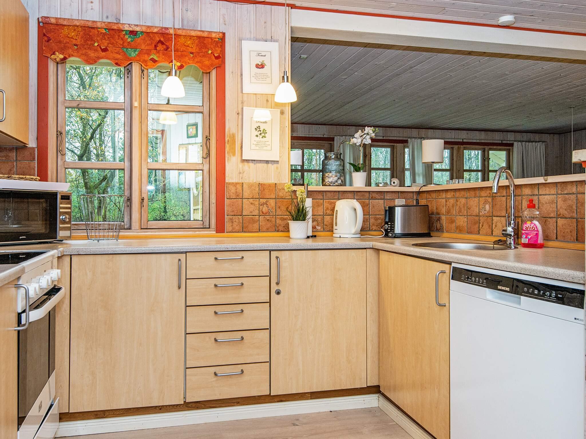 Sommerhuset har en lys og komfortabel stue med brændeovn, tv med parabol, stereoanlæg med CD og DVD-afspiller samt højstol til de mindste. Der er fire soveværelser – tre med dobbeltsenge og ét med to enkeltsenge – samt en barneseng. Huset rummer to badeværelser, begge med gulvvarme. Det åbne køkken er fuldt udstyret med bl.a. opvaskemaskine, vaskemaskine, tørretumbler og mikrobølgeovn. Derudover byder huset på både sauna og spabad til ekstra forkælelse.