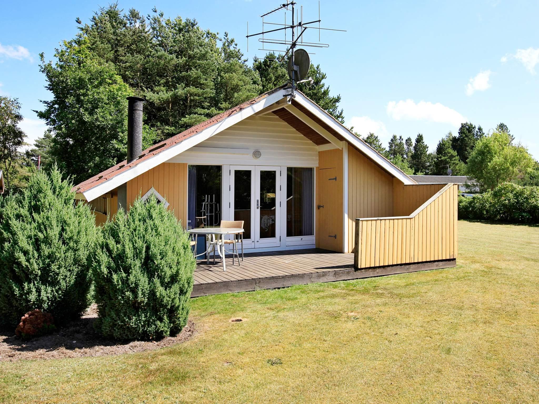 Sommerhus beliggende på en naturgrund. Opholdsstue med brændeovn og spisekrog. Skulle der være kolde aftener, kan I efter et ophold i spabadet eller saunaen hygge jer foran brændeovnen eller tv'et med parabolantenne. Ca. 18 m² stor terrasse. Gratis adgang til badeland i Oksbøl.