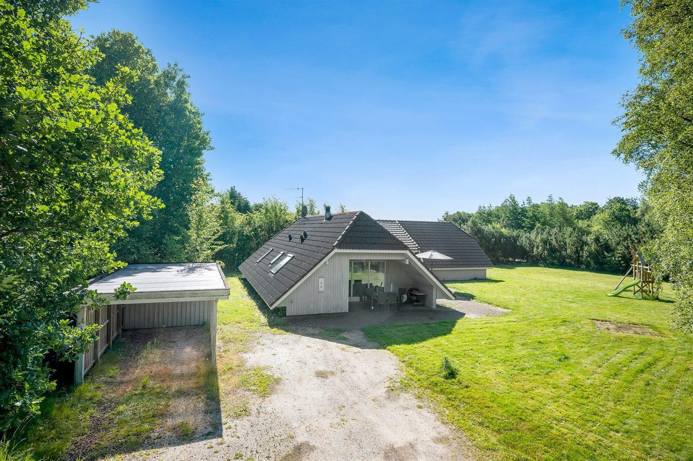 Ferieboligen er beliggende på en 1600 m² stor naturgrund. Til ferieboligen hører åbent terrasseareal. Desuden er der overdækket terrasse. Gynge. Legetårn. Vippe. Grill til rådighed. Der er carport til rådighed. Parkering ved ferieboligen.