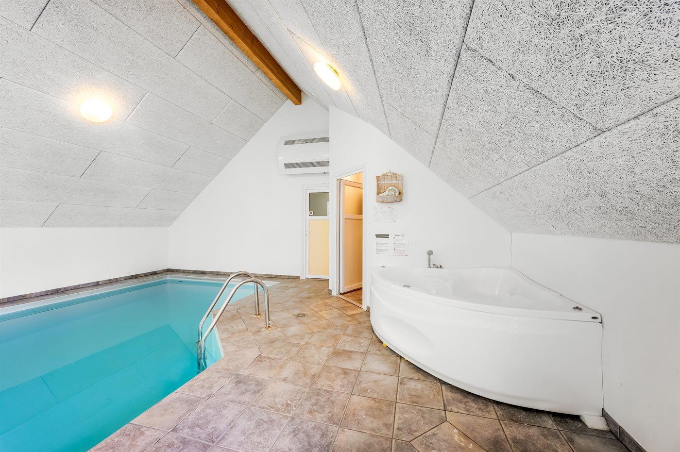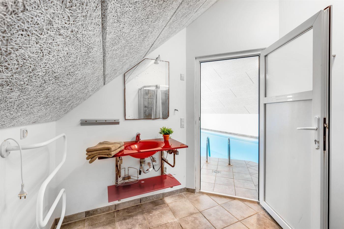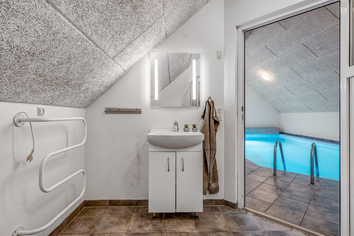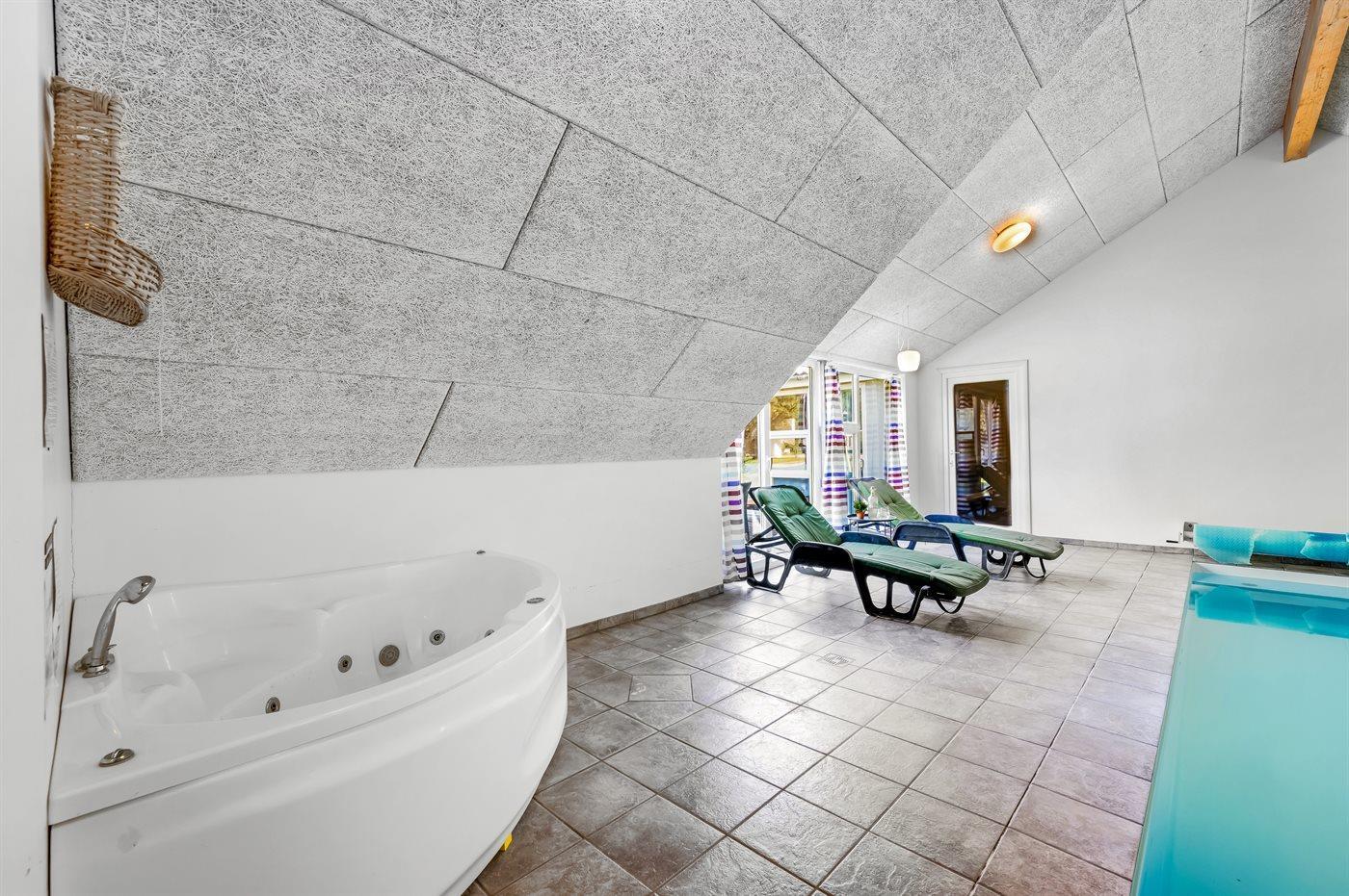 Dejligt stort poolområde med spa og adgang til sauna og 1 af husets badeværelser. Huset er beliggende på en naturgrund med legeborg, gynger og sandkasse. Huset har en god fliseterrasse, hvor man kan nyde solen og freden i området.