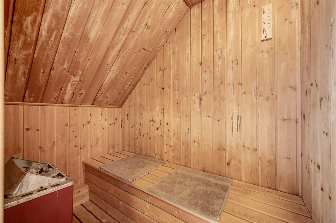 Der er 2 badeværelser med bruseniche og 2 toiletter. Der er gulvvarme på 2 badeværelser. I saunaen er der mulighed for afslapning.