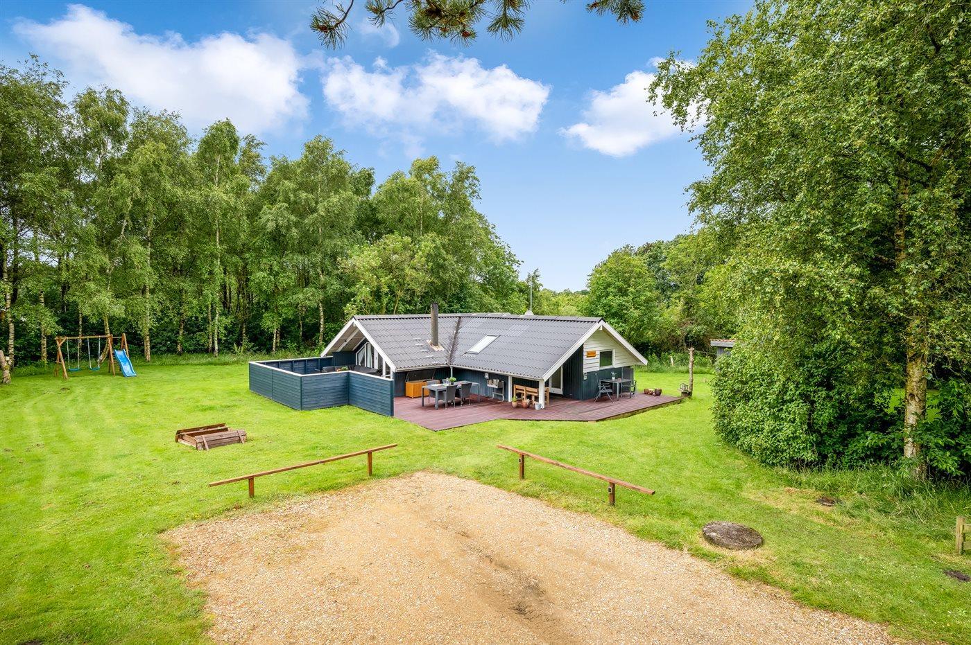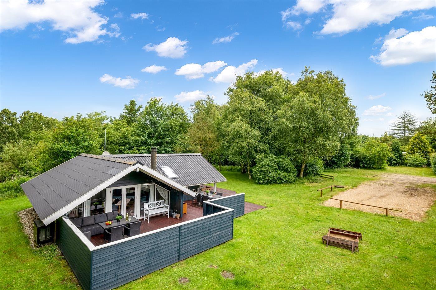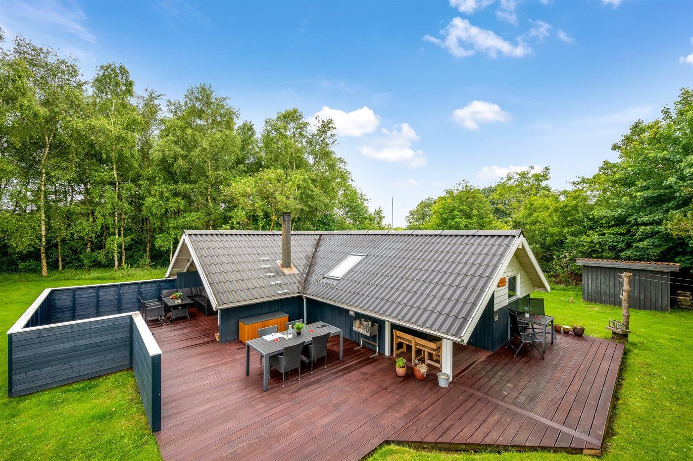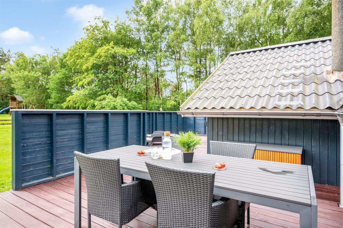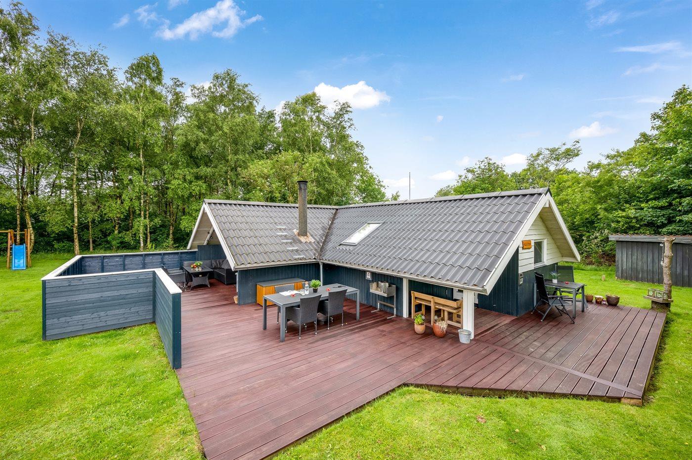 Det fine sommerhus ligger på en dejlig stor grund med gode og store træterrasser, sandkasse og legestativ - så her er god plads til en masse leg og boldspil. Desuden har I adgang til skur, hvor der er plads til cykler eller barnevogn.