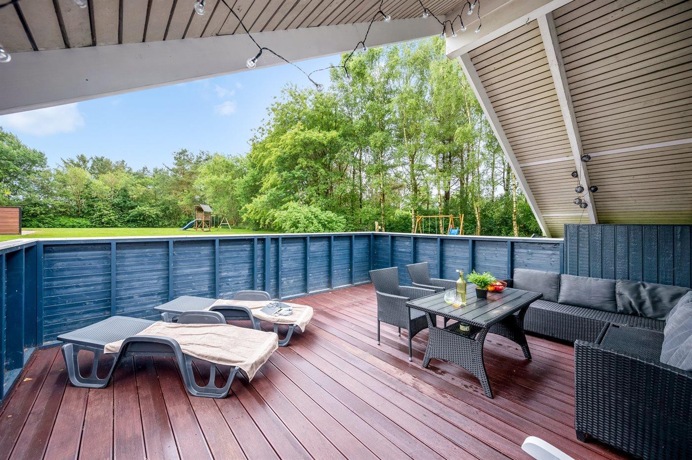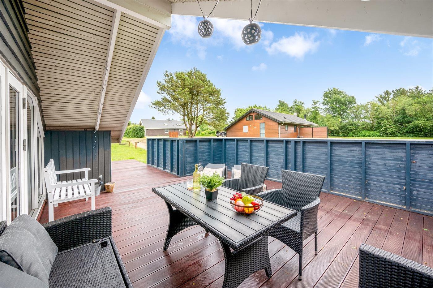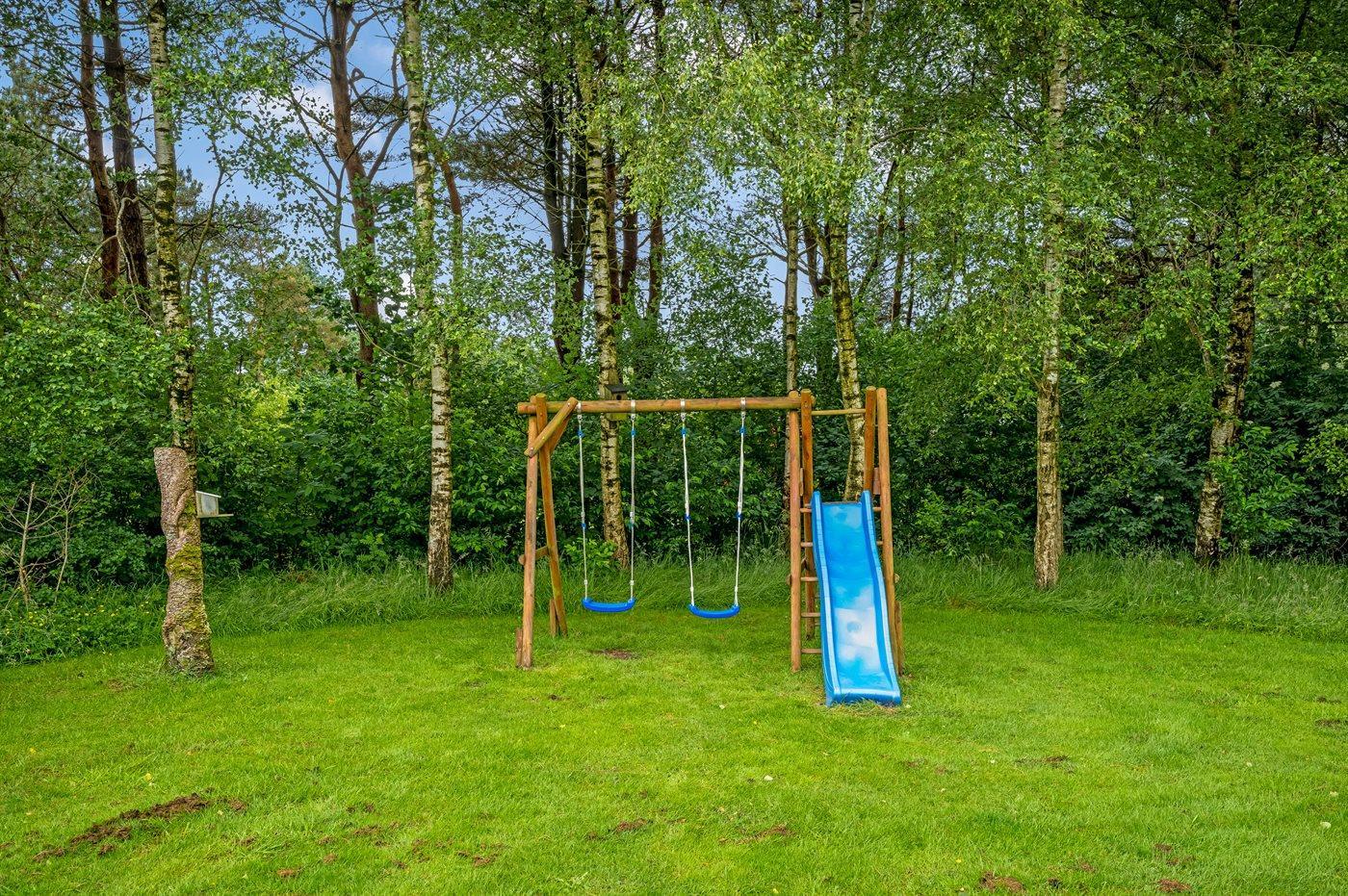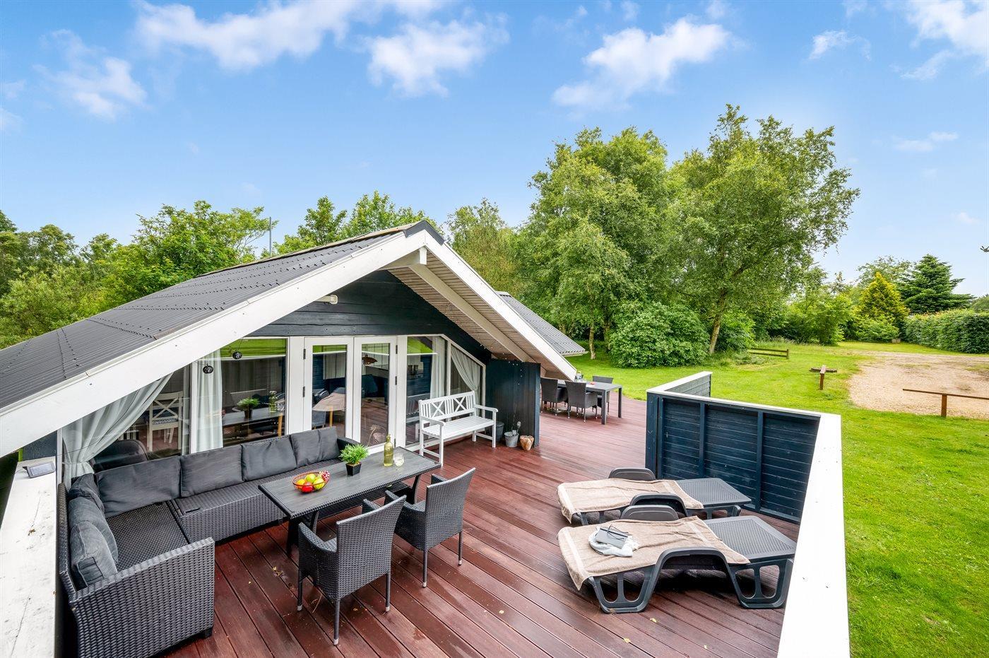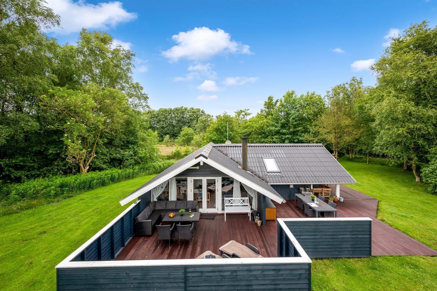 Det fine sommerhus ligger på en dejlig stor grund med gode og store træterrasser, sandkasse og legestativ - så her er god plads til en masse leg og boldspil. Desuden har I adgang til skur, hvor der er plads til cykler eller barnevogn.