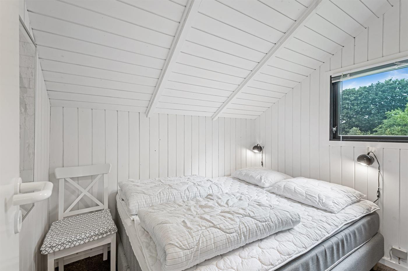 Der er i alt 3 soveværelser. Sovepladserne fordeler sig på: 4 sovepladser i dobbeltsenge. 1 soveplads i enkeltseng. Derudover er der 1 stk. barneseng.