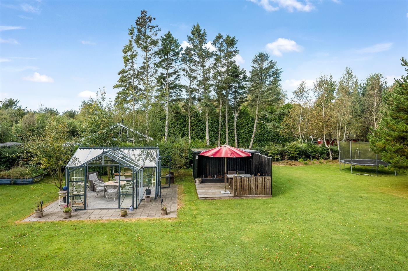 Ferieboligen er beliggende på en 1650 m² stor naturgrund. Der er 10000 m til havet. Til ferieboligen hører åbent terrasseareal. Desuden er der overdækket terrasse. Gynge. Sandkasse. Parkering ved ferieboligen.