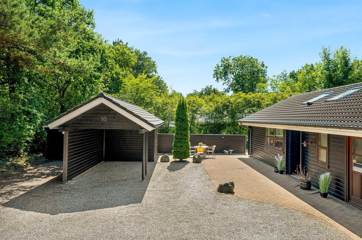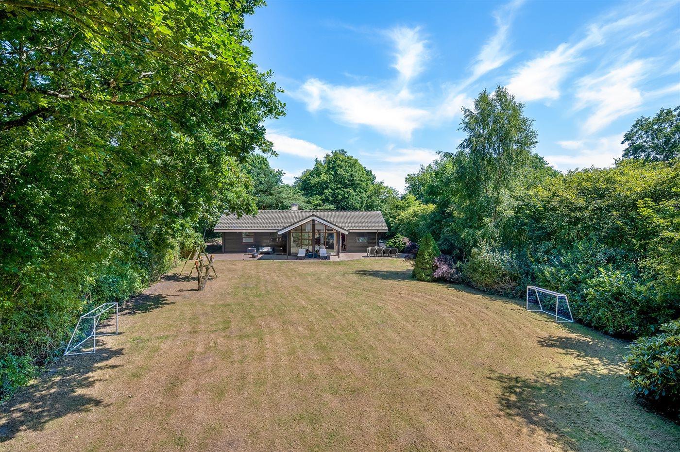 Ferieboligen er beliggende på en 1622 m² stor naturgrund. Grunden er indhegnet med et 60 cm højt hegn. Der er 12000 m til havet. Nærmeste forretning er beliggende i en afstand af 200 m. Desuden er der 15 m² overdækket terrasse. Til ferieboligen hører åbent terrasseareal. Desuden er der overdækket terrasse. Gynge. Fodboldmål. Der ligger en legeplads i en afstand af 200 m. Bålsted. Grill til rådighed. Der er carport til rådighed. Parkering ved ferieboligen.