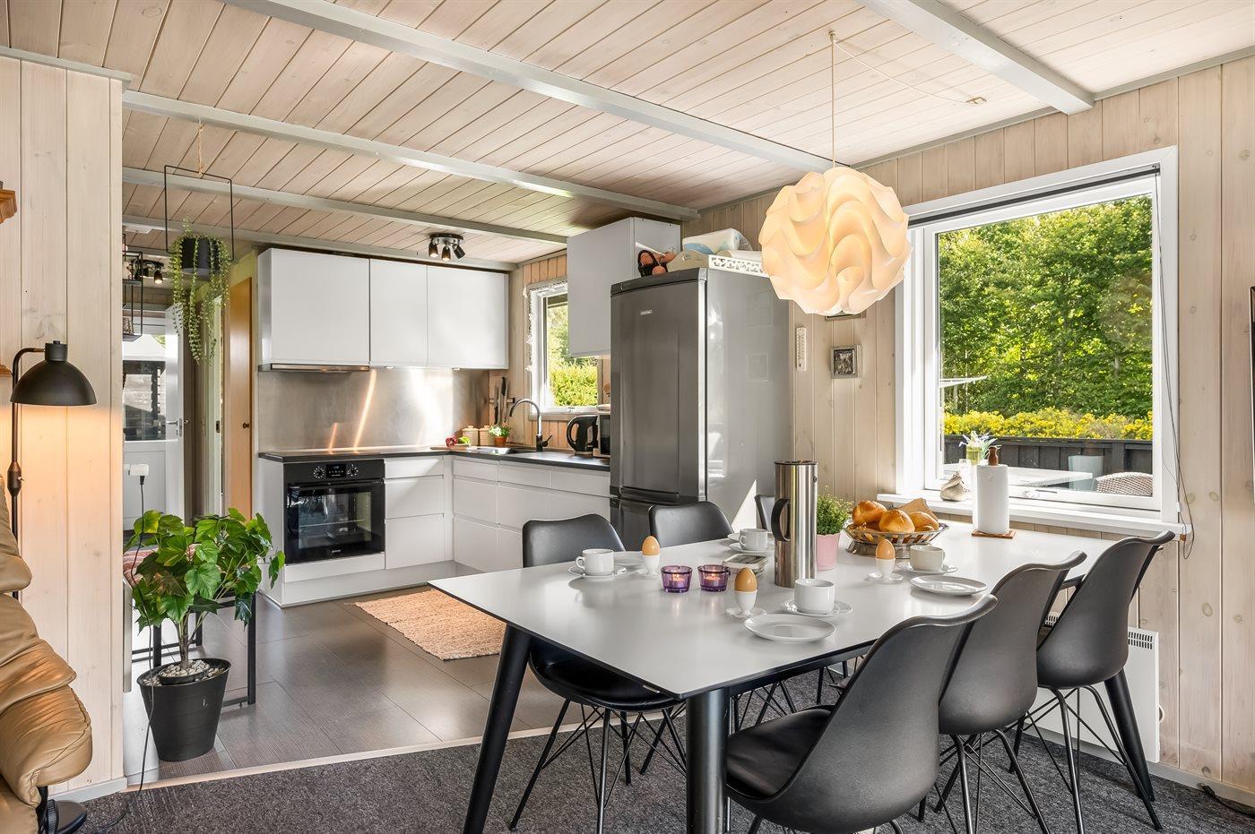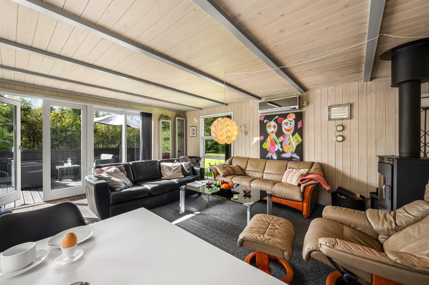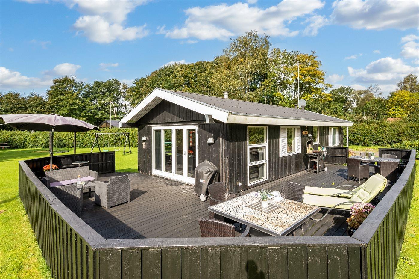 Sommerhus beliggende i rolige omgivelser på en lukket grund, hvor hygge og samvær er i fokus.