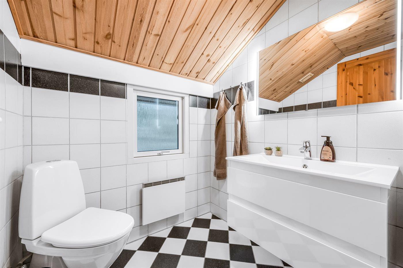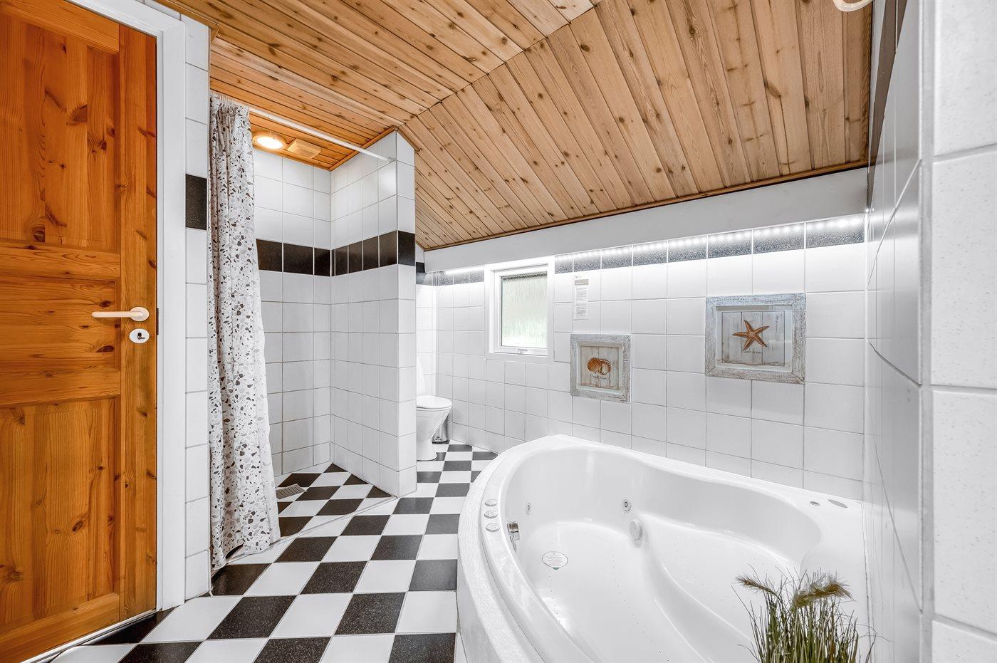 Der er 1 badeværelse med bruseniche og 2 toiletter, heraf 1 gæstetoilet. Der er gulvvarme på 1 badeværelse. I saunaen er der mulighed for afslapning.