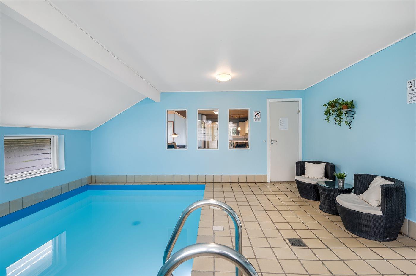 I den indendørs swimmingpool er der mulighed for leg og hyggeligt samvær. Swimmingpoolen måler op til 2,8 m i bredden, 5,5 m i længden og den er op til 1,3 m dyb. Vandet er mellem 24 og 28° C varmt.