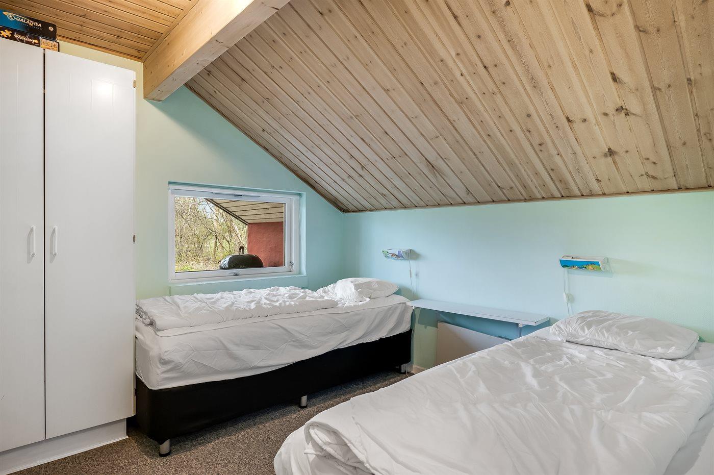 Der er i alt 4 soveværelser. Sovepladserne fordeler sig på: 4 sovepladser i dobbeltsenge. 4 sovepladser i enkeltsenge.