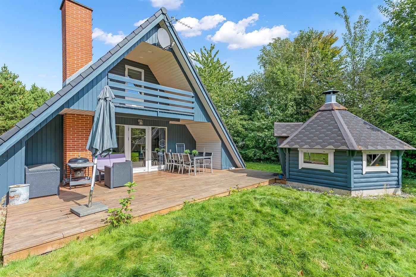 Charmerende sommerhus i Jegum Ferieland med spabad, brændeovn og stor indhegnet grund tæt på natur og faciliteter.