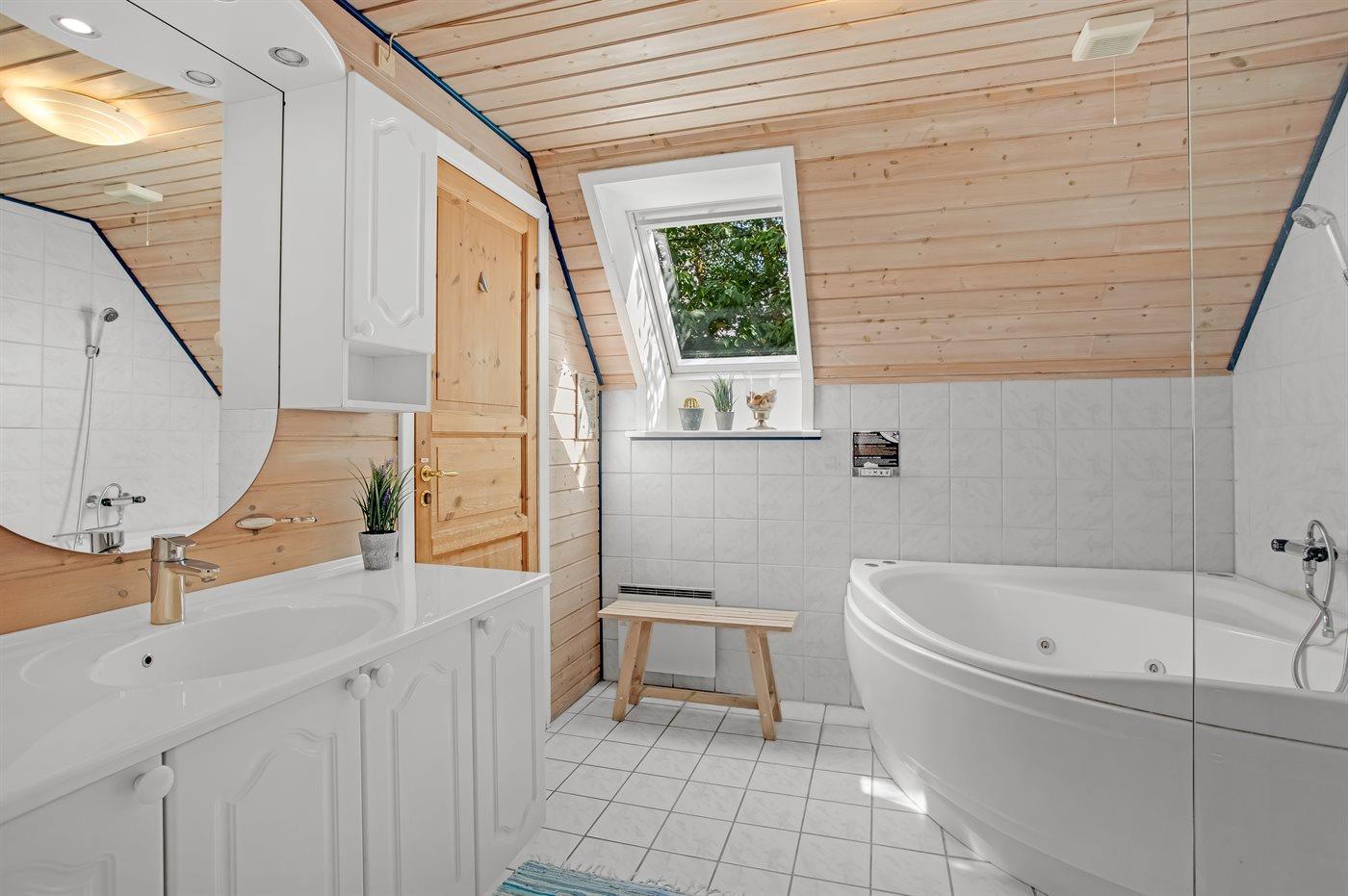 Der er 1 badeværelse med bruseniche og 1 toilet., heraf 1 gæstetoilet. Der er gulvvarme på 1 badeværelse.