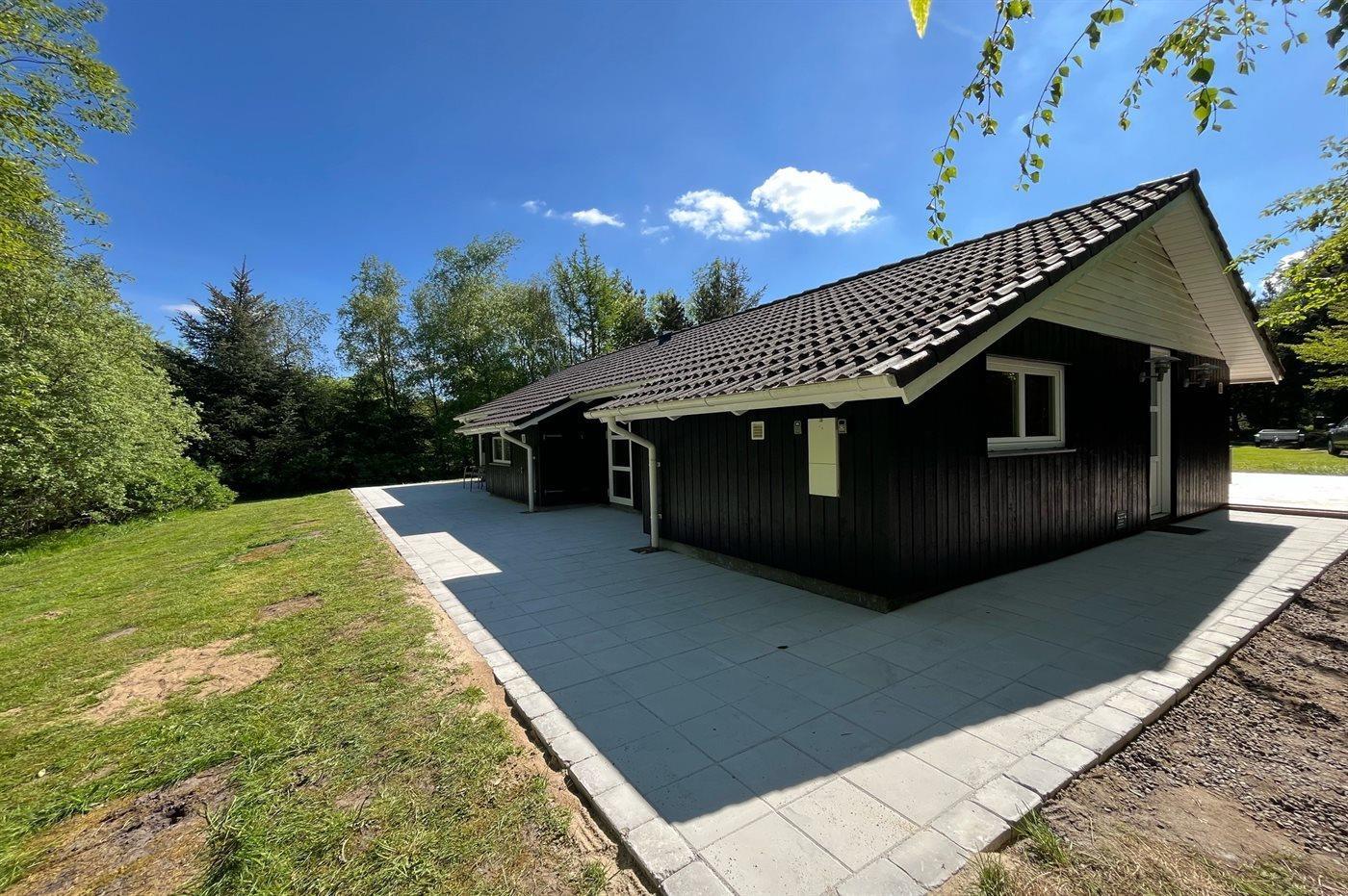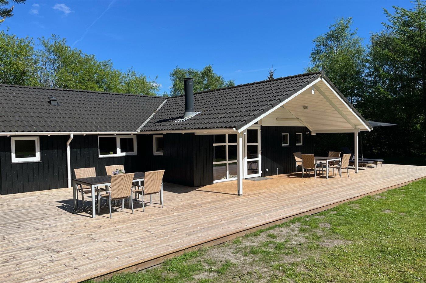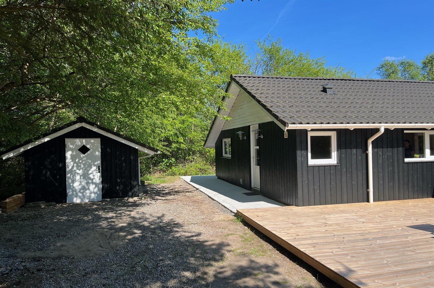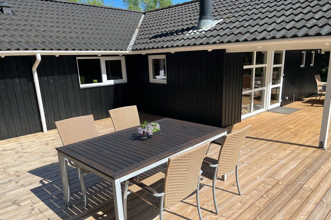 Ferieboligen er beliggende på en 1814 m² stor naturgrund. Der er 12000 m til havet. Nærmeste forretning er beliggende i en afstand af 600 m. Til ferieboligen hører 100 m² terrasseareal. Desuden er der 12 m² overdækket terrasse. Der er redskabsrum. Gynge. Sandkasse. Grill til rådighed. Der er installeret stik til opladning af elbil. Parkering ved ferieboligen.