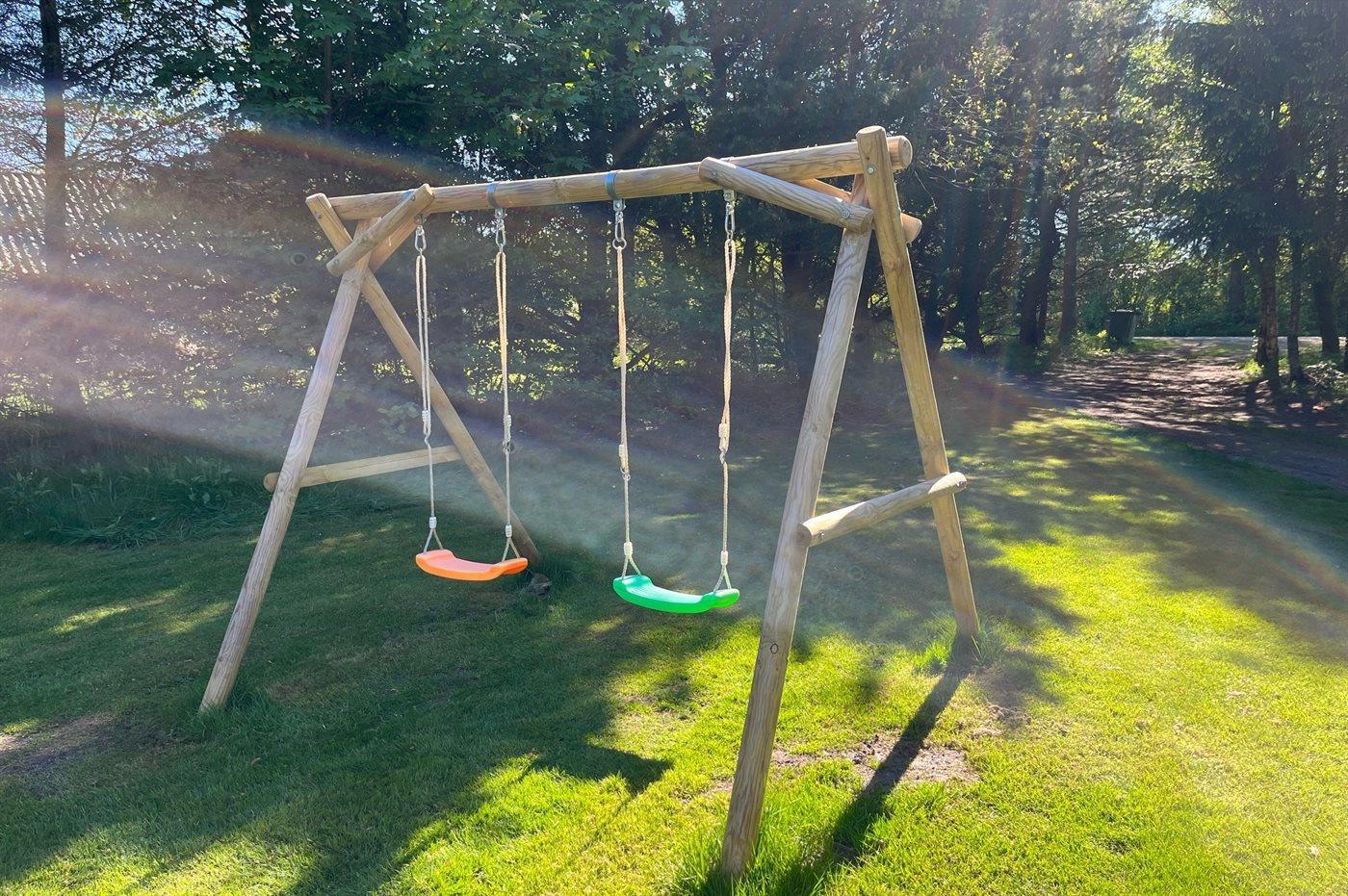På en stor og afskærmet grund midt i Jegum Ferieland ligger dette rummelige og hyggeligt indrettede sommerhus. Grunden, hvor der er plads til boldspil og leg grænser op mod et fredet naturområde. Bemærk, at de 2 sovepladser på madrasser befinder sig på husets hems.