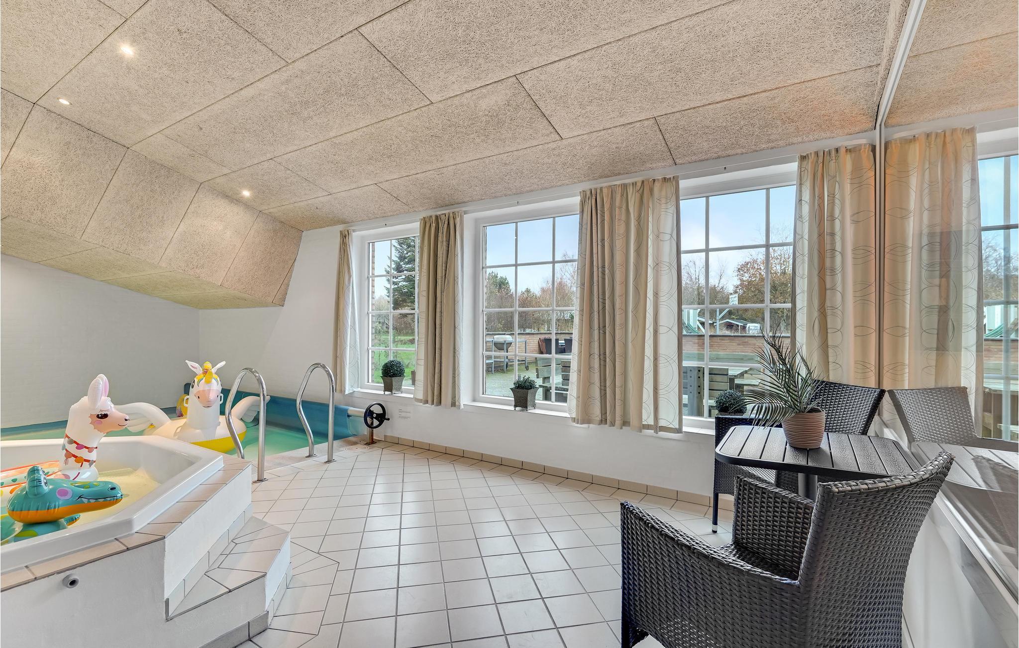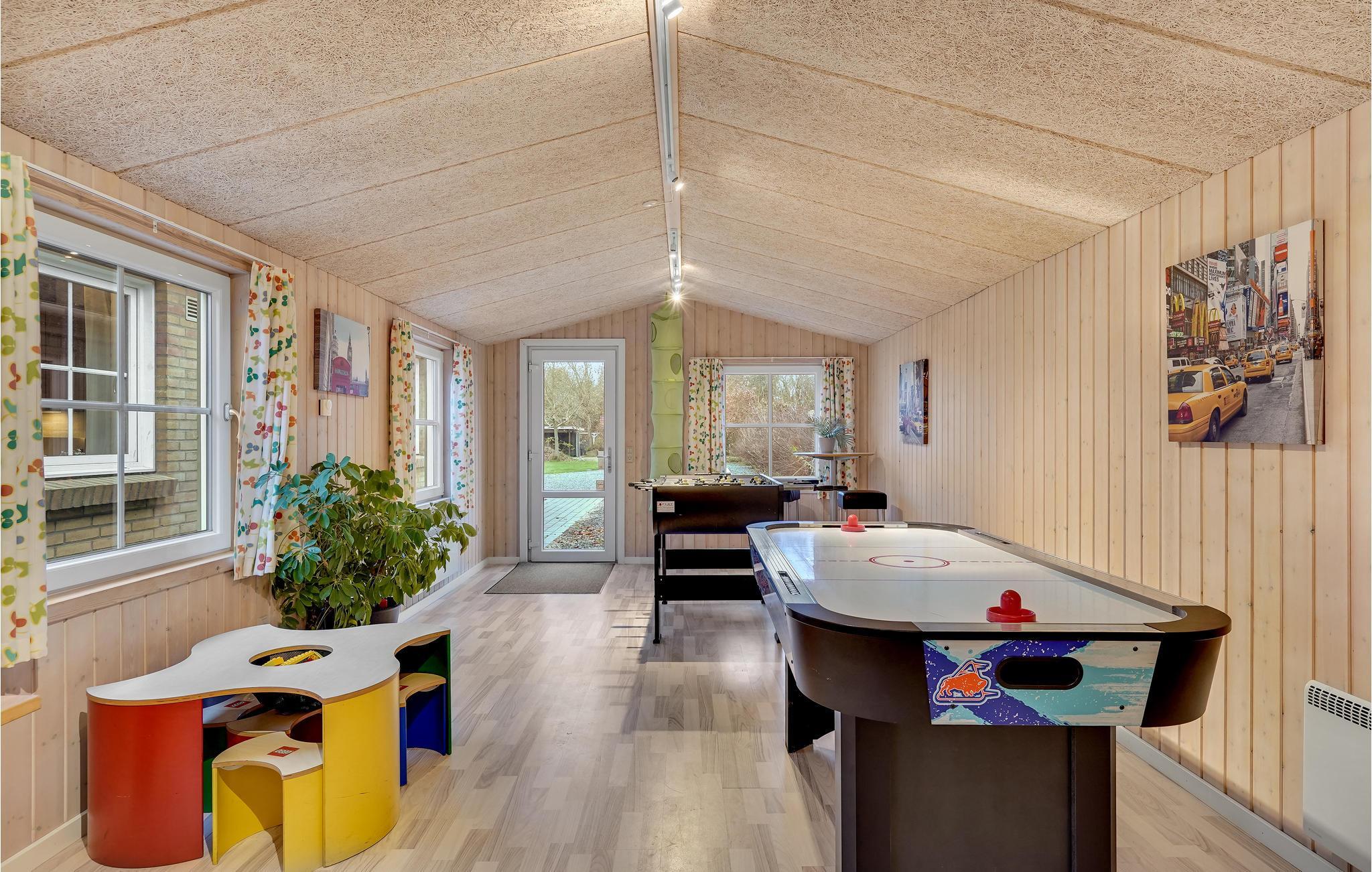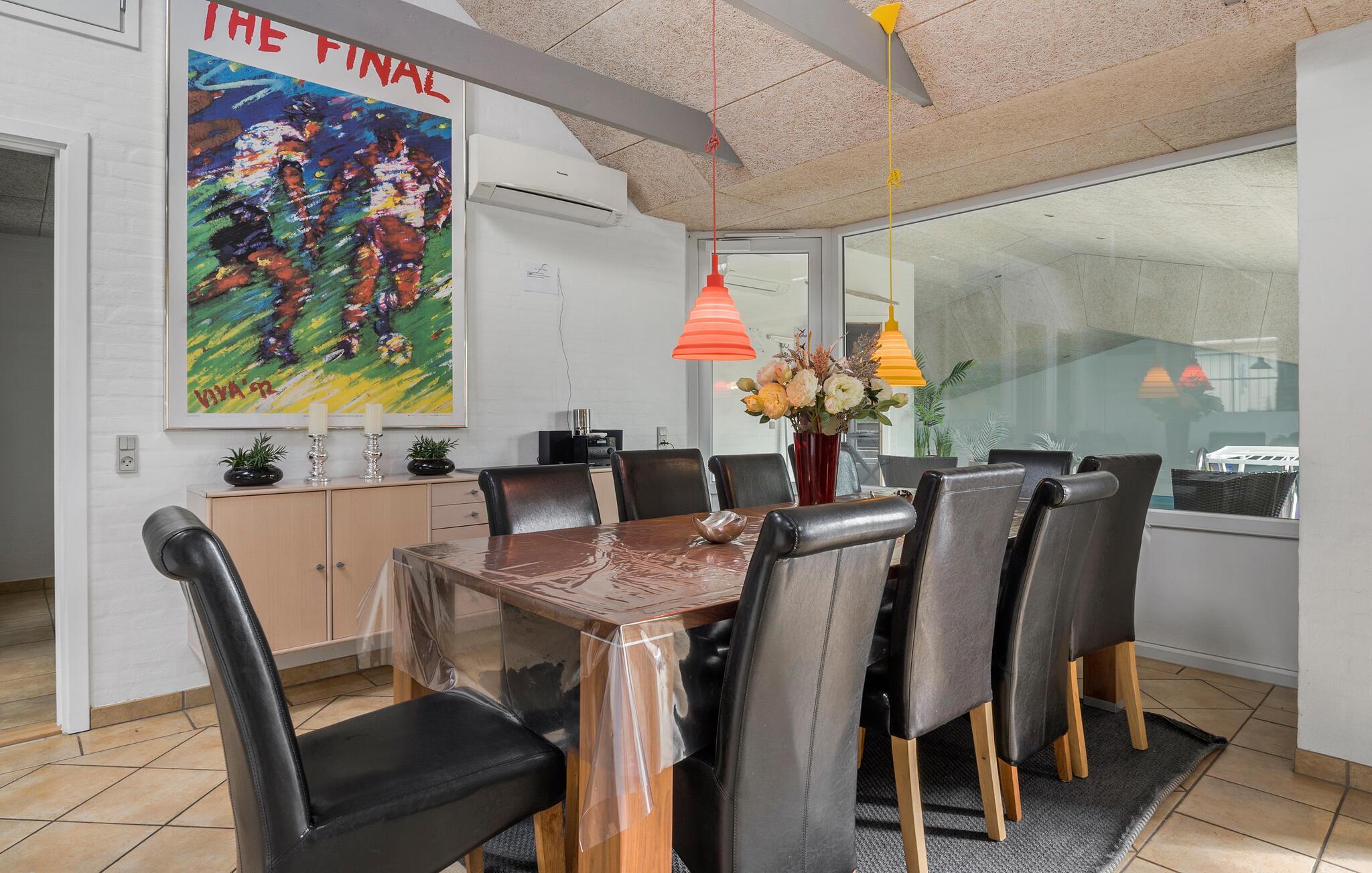 Dejligt feriehus med swimmingpool, sauna, standvandsspa samt et separat aktivitetshus med airhockey, bordfodbold m.m. Det har en fantastisk beliggenhed på en stor ugenert, delvist lukket naturgrund med et shelter, og kun få minutters kørsel fra flere golfbaner og den jyske vestkyst med Danmarks bedste og hvideste badestrande. Der er heller ikke langt til en større put and take-sø. Rummeligt køkken/alrum med klinkegulv og gulvvarme, en hyggelig stueafdeling med sofagruppe samt brændeovn. Affugteren i poolrummet kører på aktivitetssensor, hvilket er med til at reducere el-udgifterne. Huset indeholder desuden også flere varmepumper med klimaanlæg. Endvidere findes der udendørs en basketballbane samt en stor lege-/aktivitetsborg.