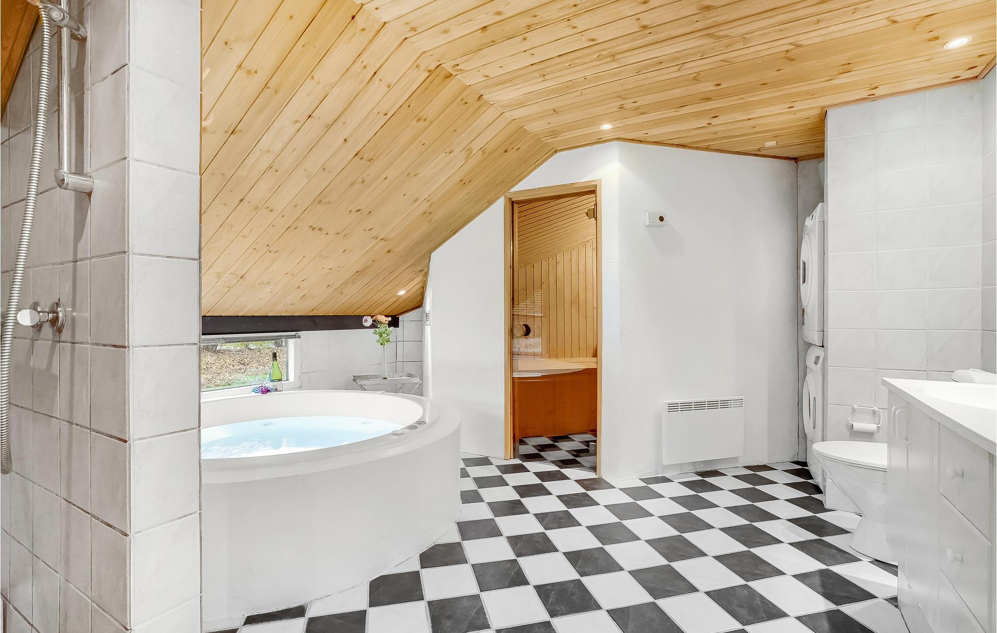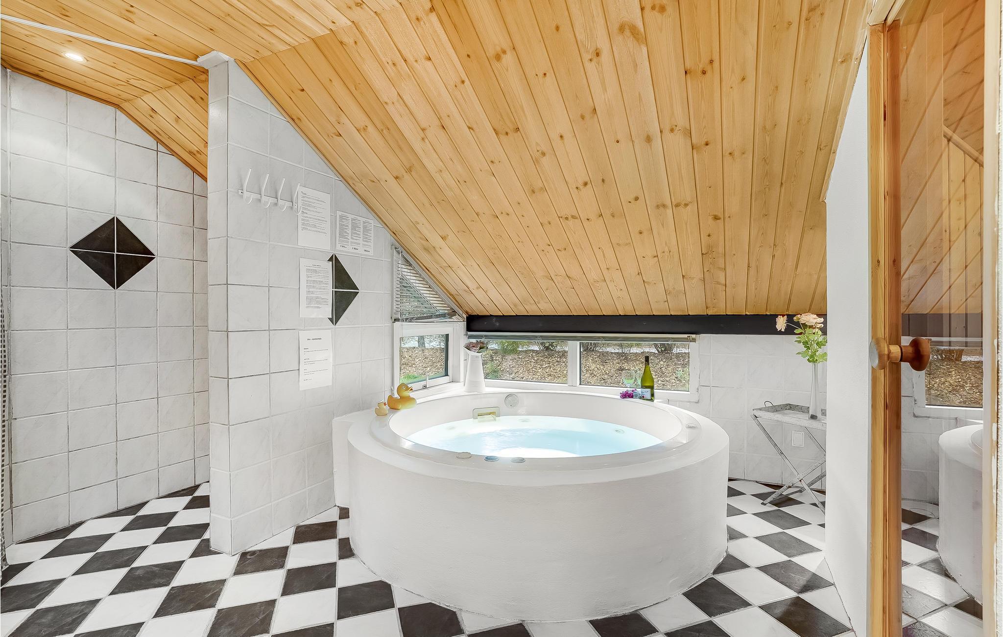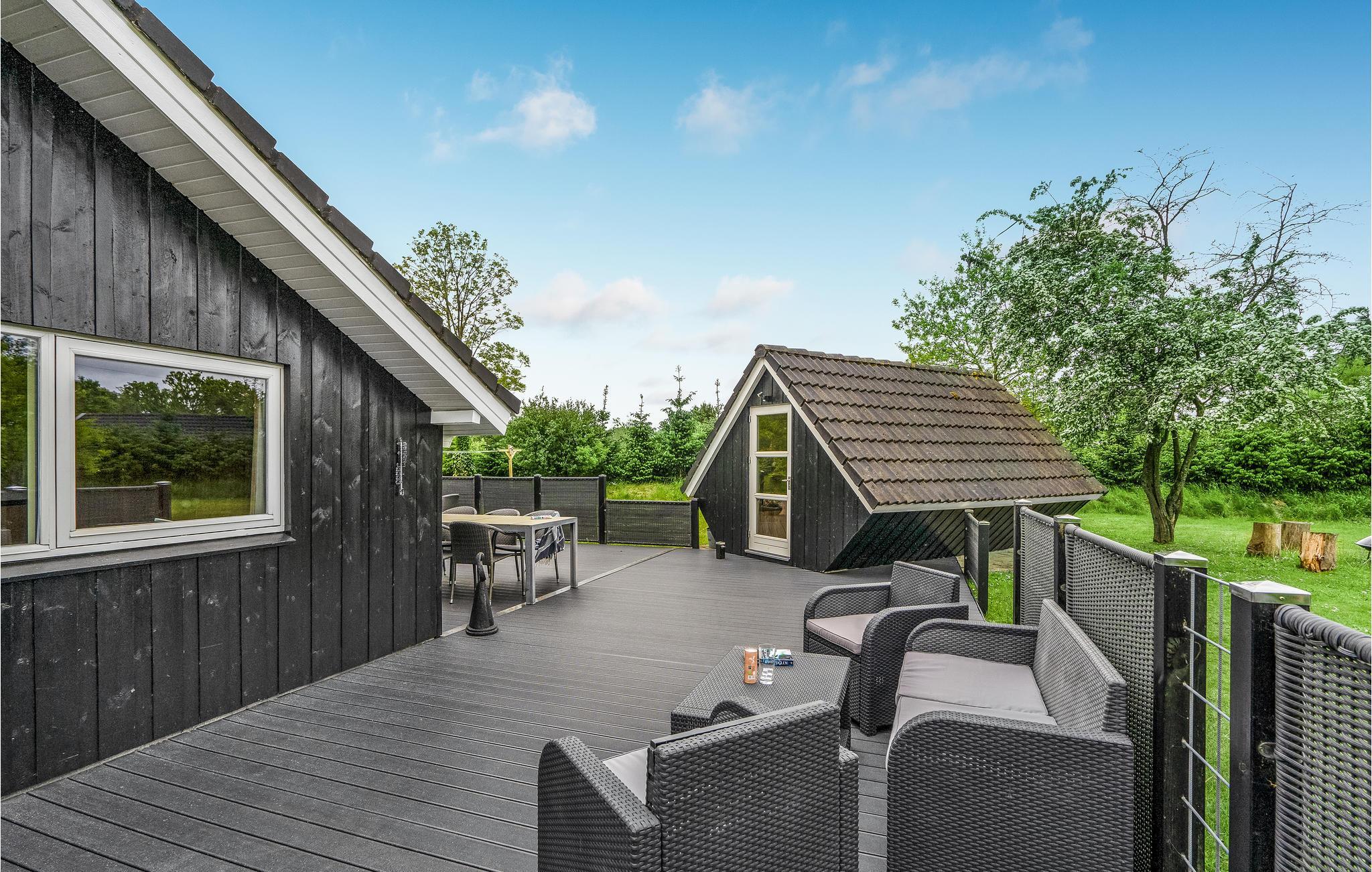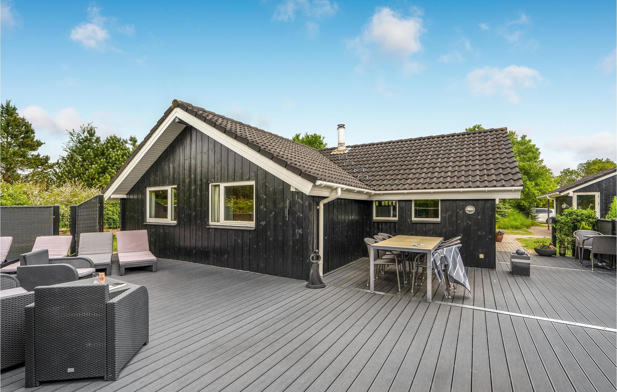 Rigtig hyggeligt og vedligeholdt feriehus med en meget personlig indretning. I det rummelige køkken/alrum med samtalekøkken findes alt i hårde hvidevarer samt en hyggeskabende brændeovn. Det store badeværelse er udstyret med spabad og har adgang til saunaen. Omkring feriehuset er der opført flere gode, læfulde og delvis overdækkede terrasser med komfortable havemøbler. Der er gåafstand til et større aktivitetscenter med indkøbsmuligheder, restaurant, klappevenlige dyr (geder), fælles legeplads samt et spilleland med airhockey, bordtennis og bordfodbold (mod betaling).