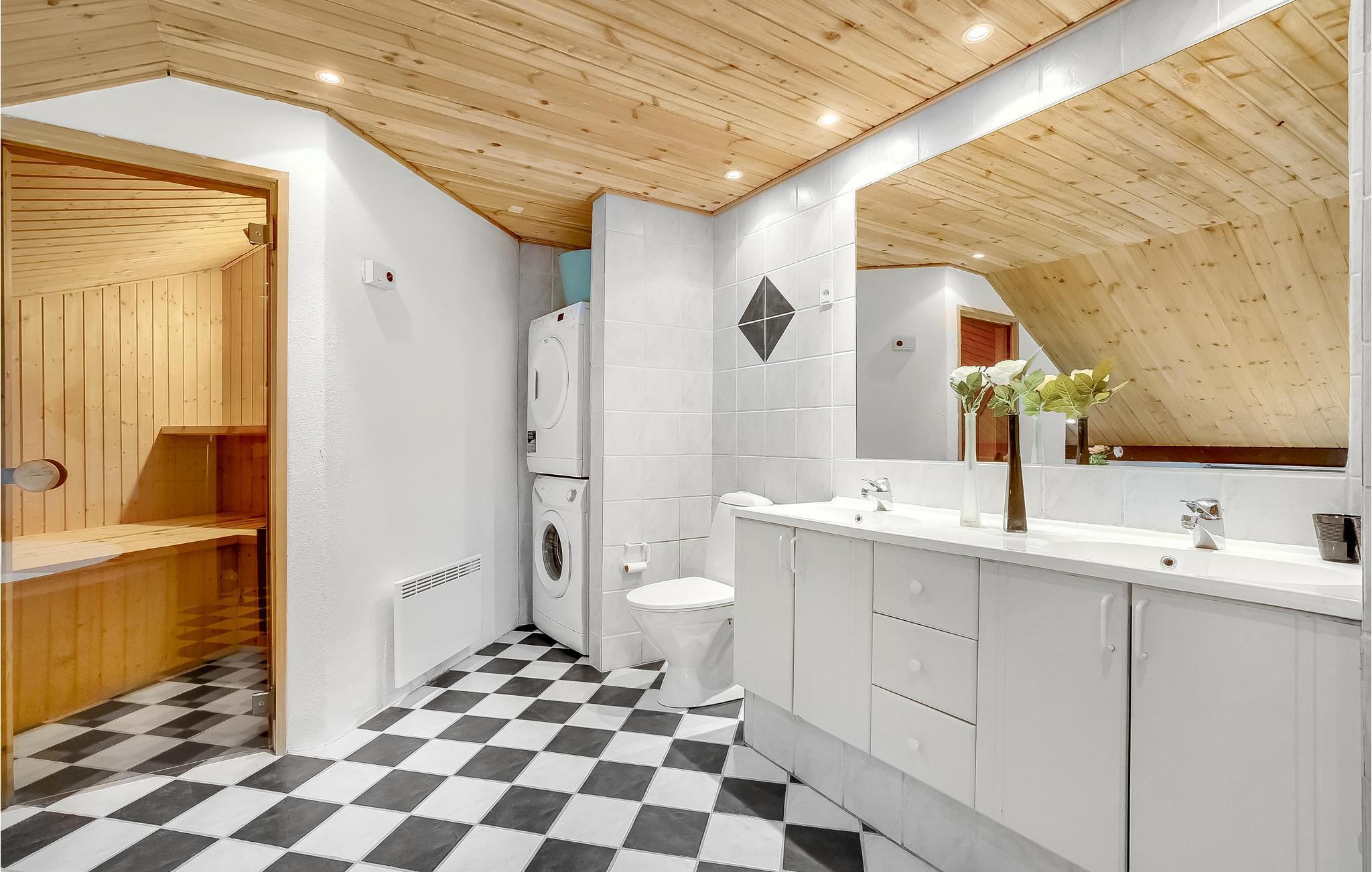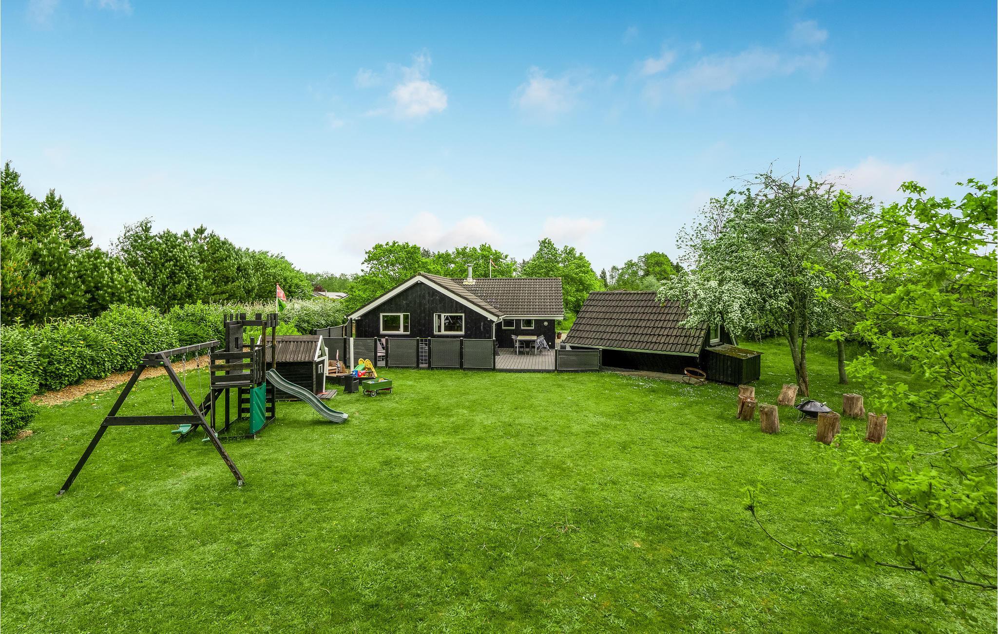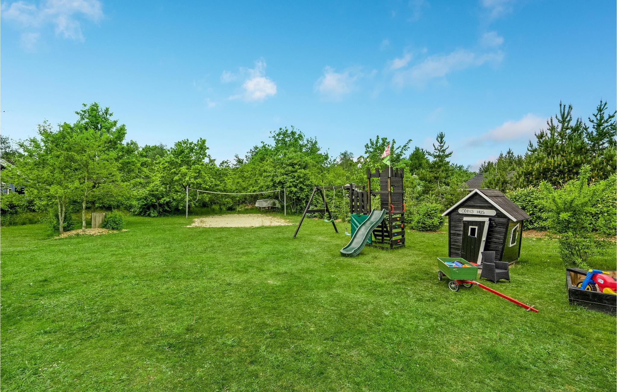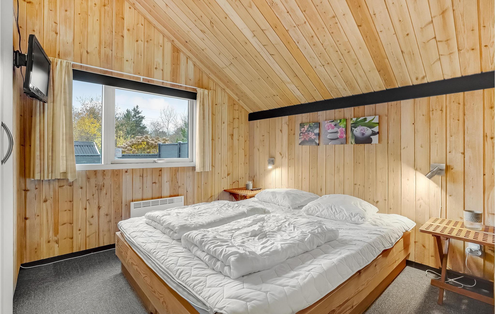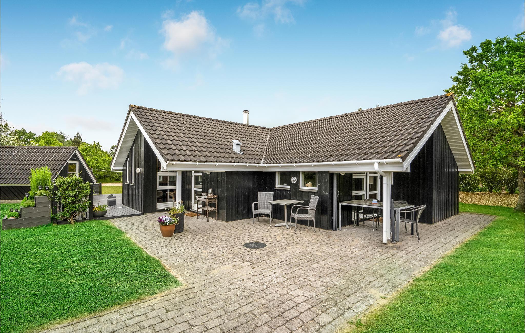 Rigtig hyggeligt og vedligeholdt feriehus med en meget personlig indretning. I det rummelige køkken/alrum med samtalekøkken findes alt i hårde hvidevarer samt en hyggeskabende brændeovn. Det store badeværelse er udstyret med spabad og har adgang til saunaen. Omkring feriehuset er der opført flere gode, læfulde og delvis overdækkede terrasser med komfortable havemøbler. Der er gåafstand til et større aktivitetscenter med indkøbsmuligheder, restaurant, klappevenlige dyr (geder), fælles legeplads samt et spilleland med airhockey, bordtennis og bordfodbold (mod betaling).