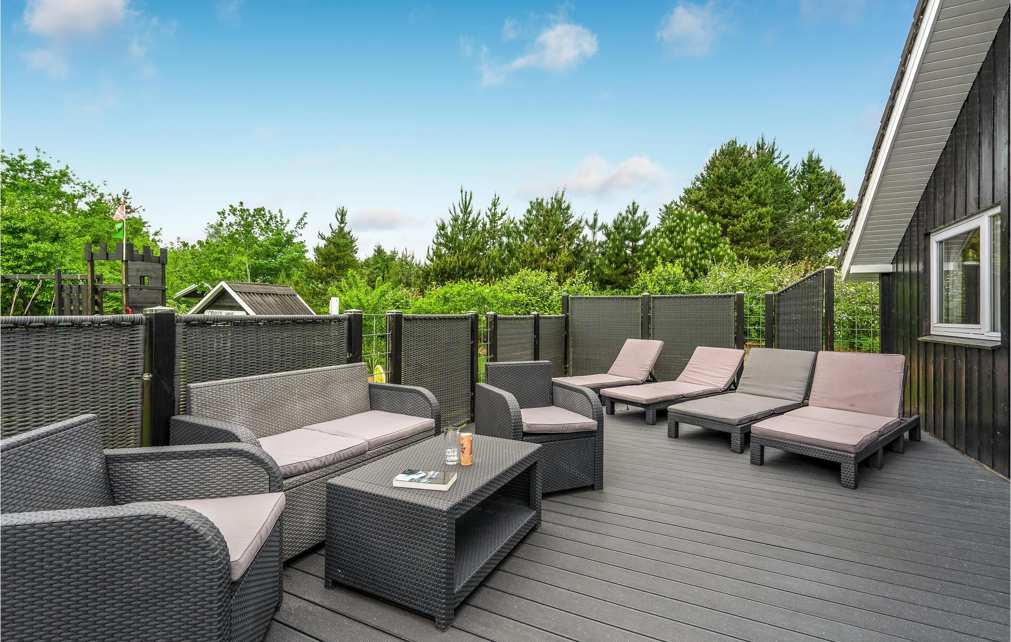 Hyggeligt feriehus i Oksbøl med sauna, spabad og lækre terrasser nær aktivitetscenter og natur.