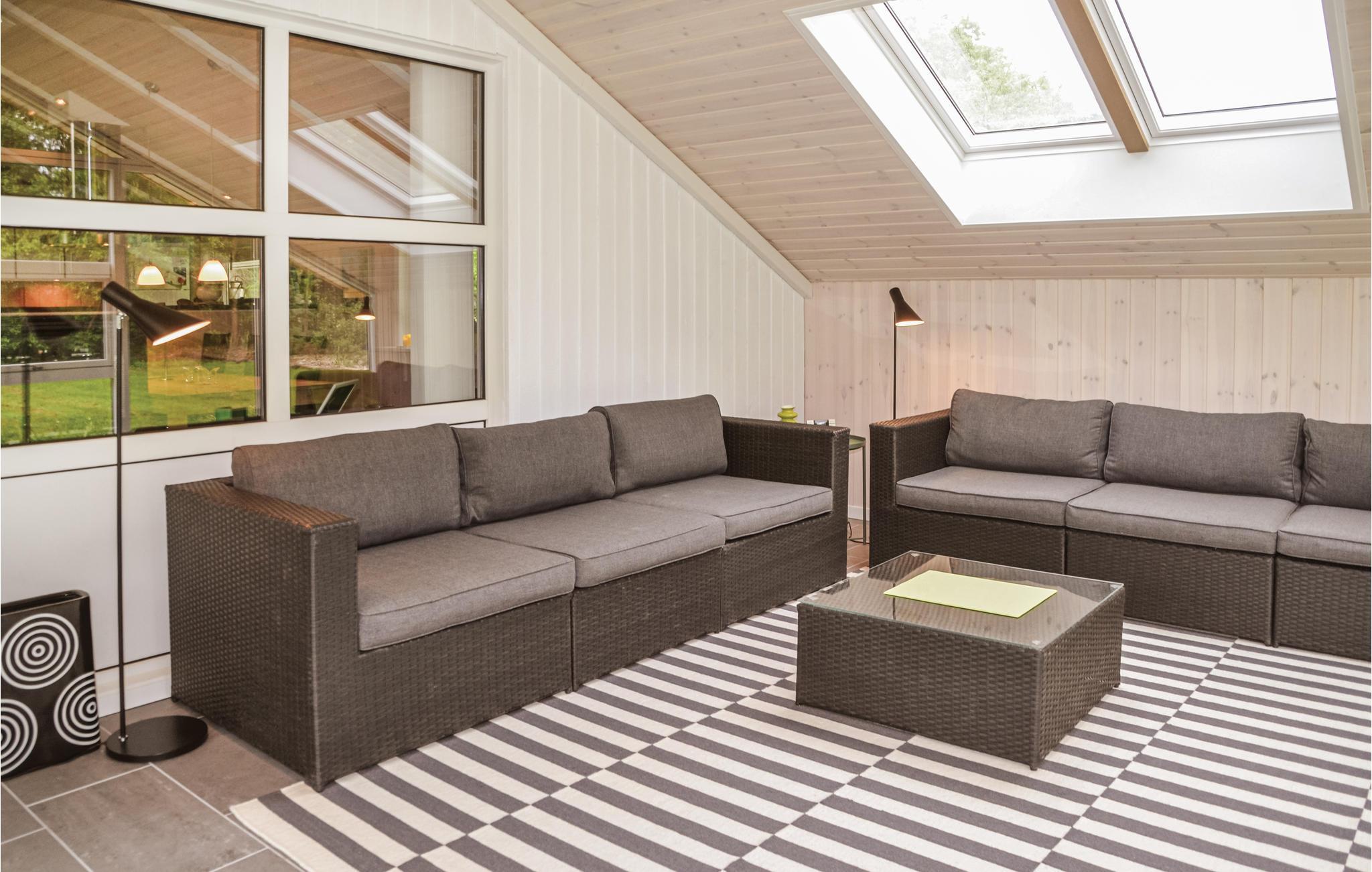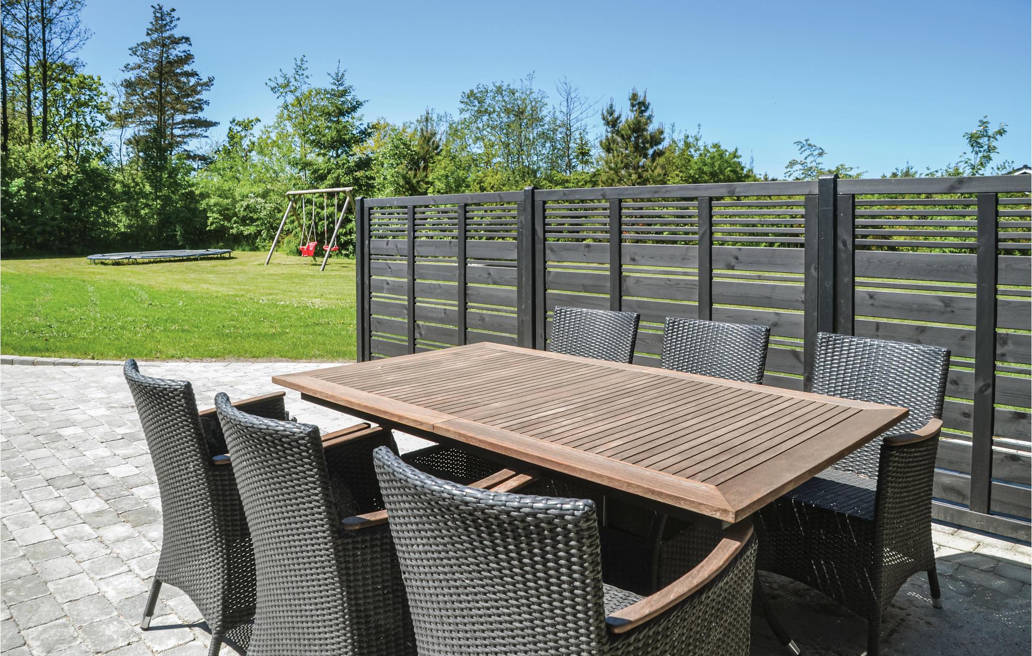 Rigtig hyggeligt og velholdt sommerhus, ugenert beliggende på en stor, lukket hjørnegrund med mange aktiviteter. Dejlig stort og rummeligt, lyst køkken/alrum med brændeovn samt klimaanlæg med udgang til husets havestue og flere terrasser. I husets store soveværelse findes en elevationsseng med mulighed for indstilling af hård eller blød madras. Der findes flere gode, læfyldte terrasser samt en bålplads på grunden. Den store have er omgivet af træer og buske, så I kan nyde jeres ferie i private omgivelser. I ferielandets aktivitetsområde kan I hygge jer med et spil minigolf, klappe gederne, spille tennis og benytte den fælles legeplads samt grillplads med grillhytter.