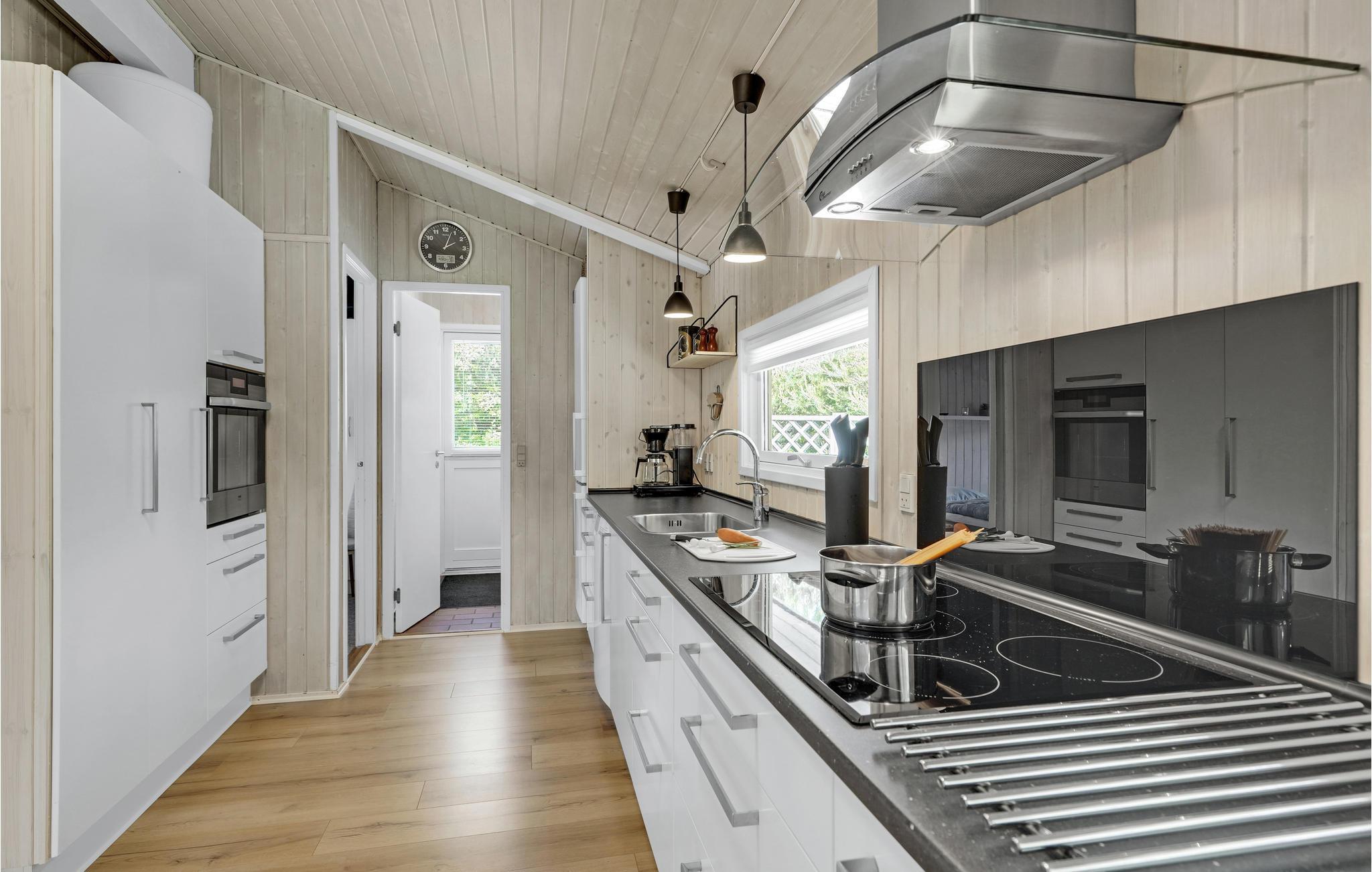 På en stor lukket grund, ligger dette velholdte sommerhus. Huset oser af charme og personlig indretning. Det rummer et stort køkken i åben forbindelse med vinkelstuen, hvorfra der er udgang til delvist overdækkede terrasser. På grunden er der en god legeplads, som børnene helt sikkert vil tage i brug under hele ferien. Der findes også en bålplads og flere gode terrasser, hvor I kan slappe af og nyde den friske luft.