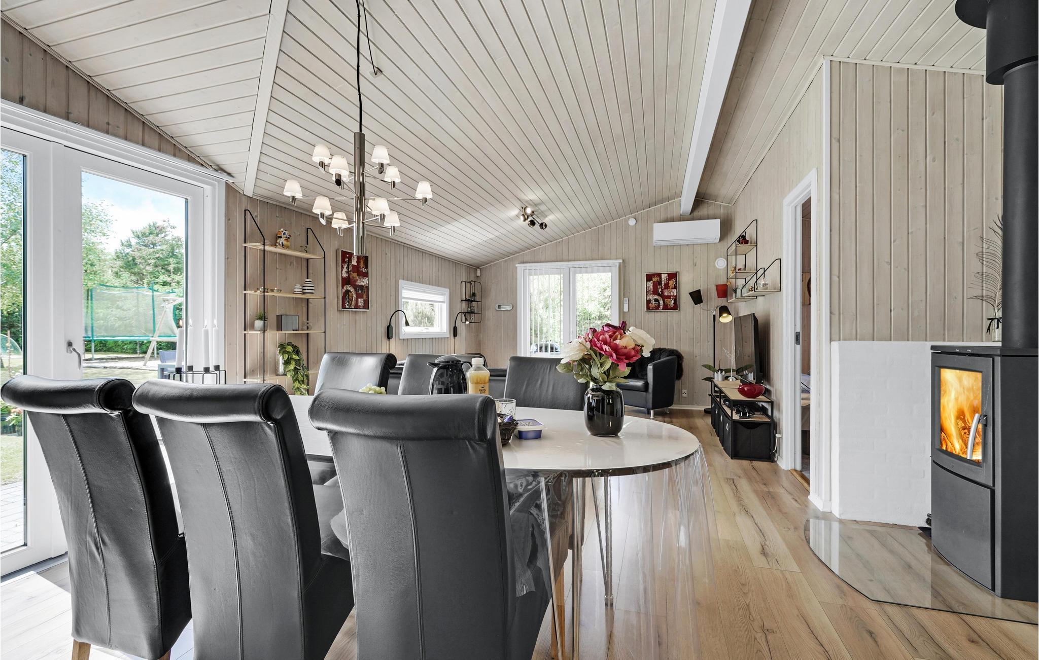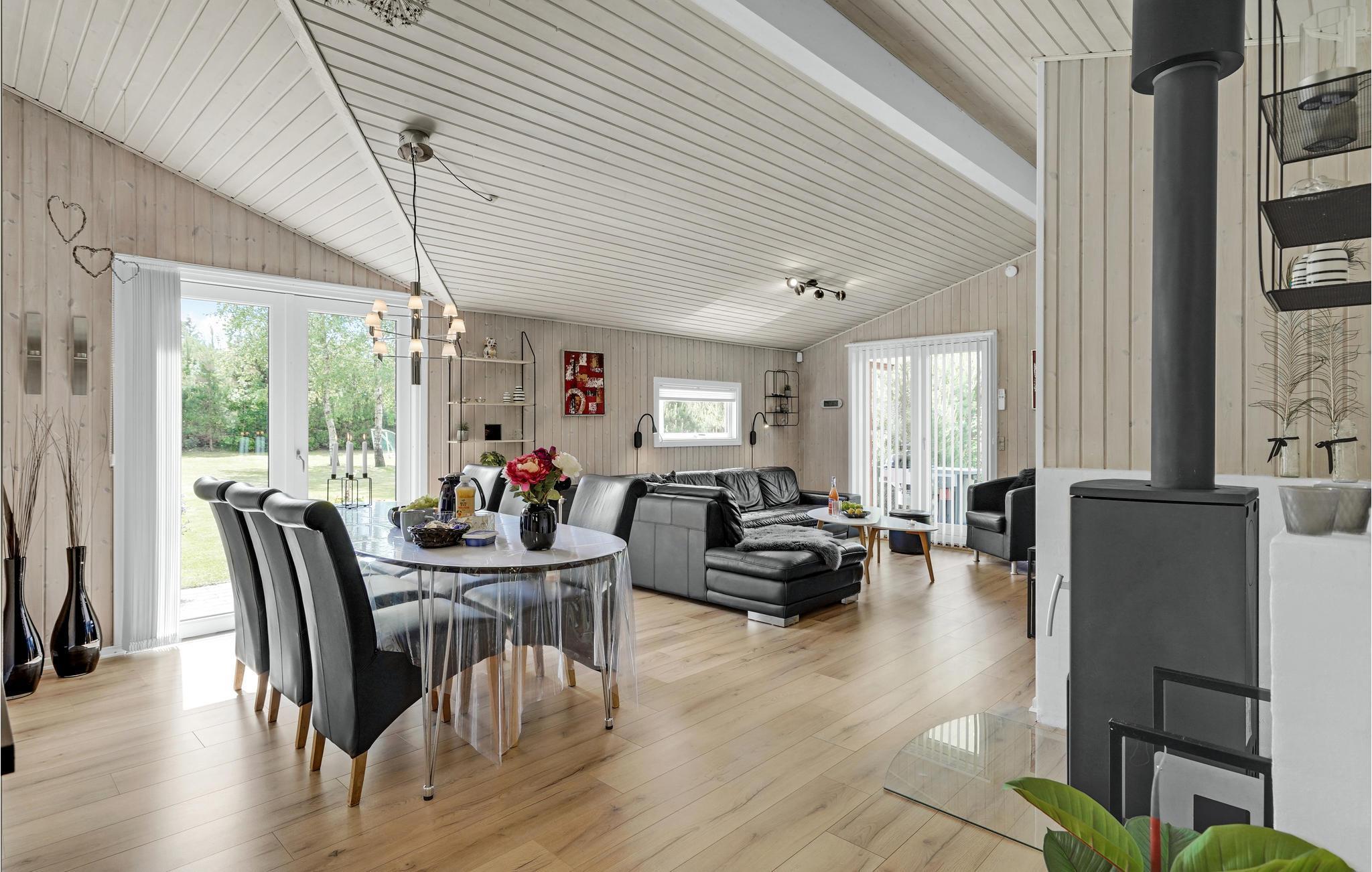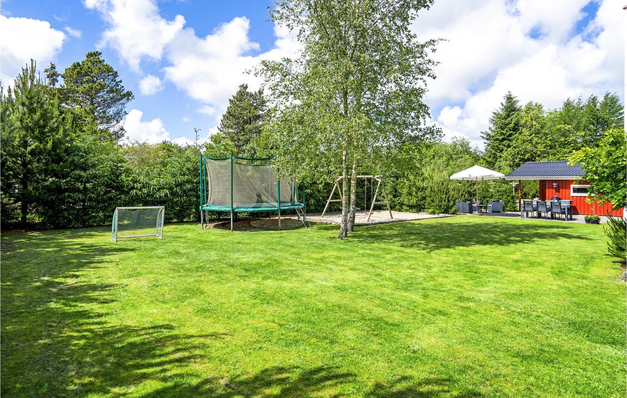 Charmerende sommerhus med store terrasser, legeplads og bålplads i naturskønne omgivelser ved Jegum Ferieland.