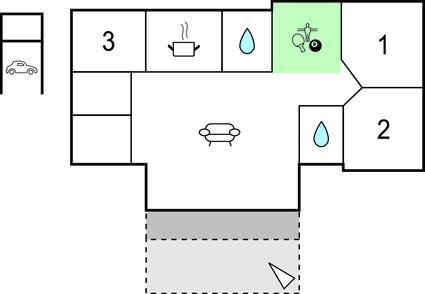 På en stor og delvis lukket naturgrund ligger dette aktivitetsferiehus med bordfodbold. Det er indrettet med et godt og rummeligt køkken/alrum med brændeovn samt klimaanlæg. Til huset hører også en skøn terrasse, hvor familien kan sidde og nyde eftermiddagskaffen eller sole sig på varme sommerdage. I haven er der både legehus, gynge, sandkasse og fodboldmål, og I kan også tage et spil petanque. Efter en dejlig udflugtsdag er det skønt at komme hjem til feriehuset, parkere bilen i carporten, lave lækker aftensmad på grillen for derefter at slappe af foran fjernsynet, måske tage et spil kort eller brætspil.