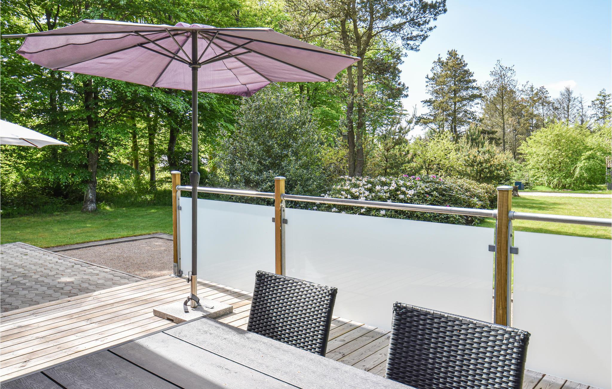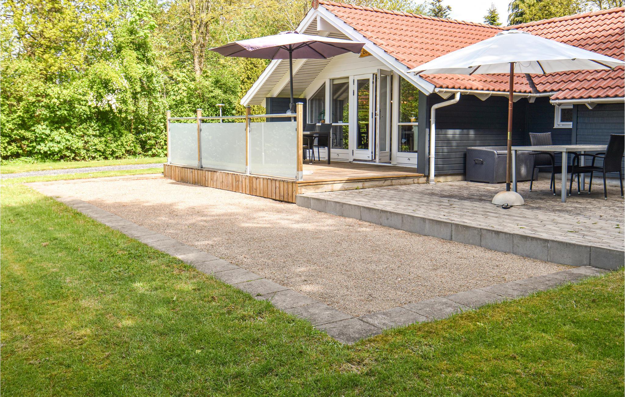 Aktivitetsferiehus i Jegum Ferieland med terrasse, brændeovn, klimaanlæg og legeplads i naturskønne omgivelser.
