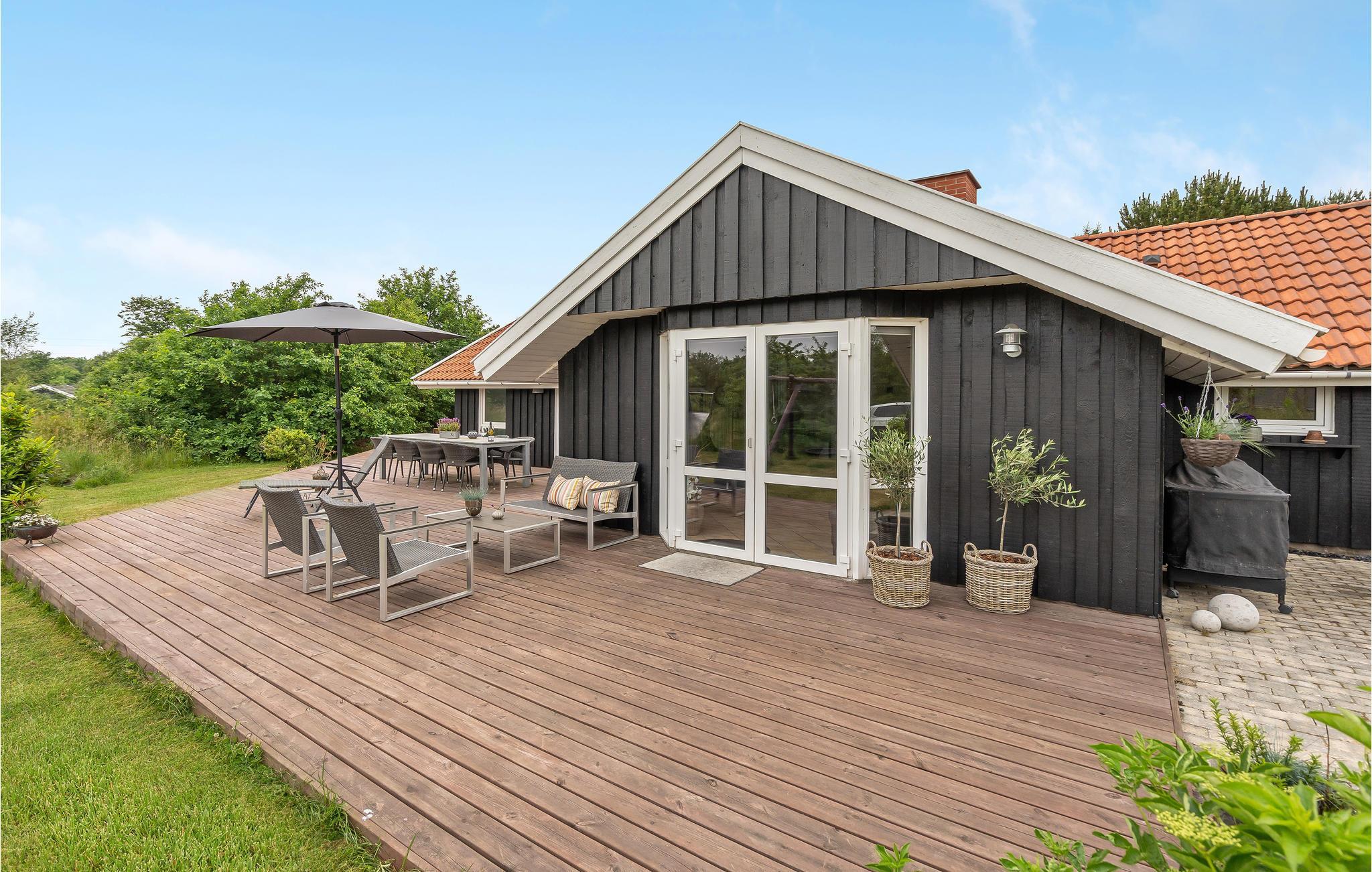 Hyggeligt feriehus i Jegum Ferieland med pool, spabad, sauna og stor indhegnet have til leg og afslapning.