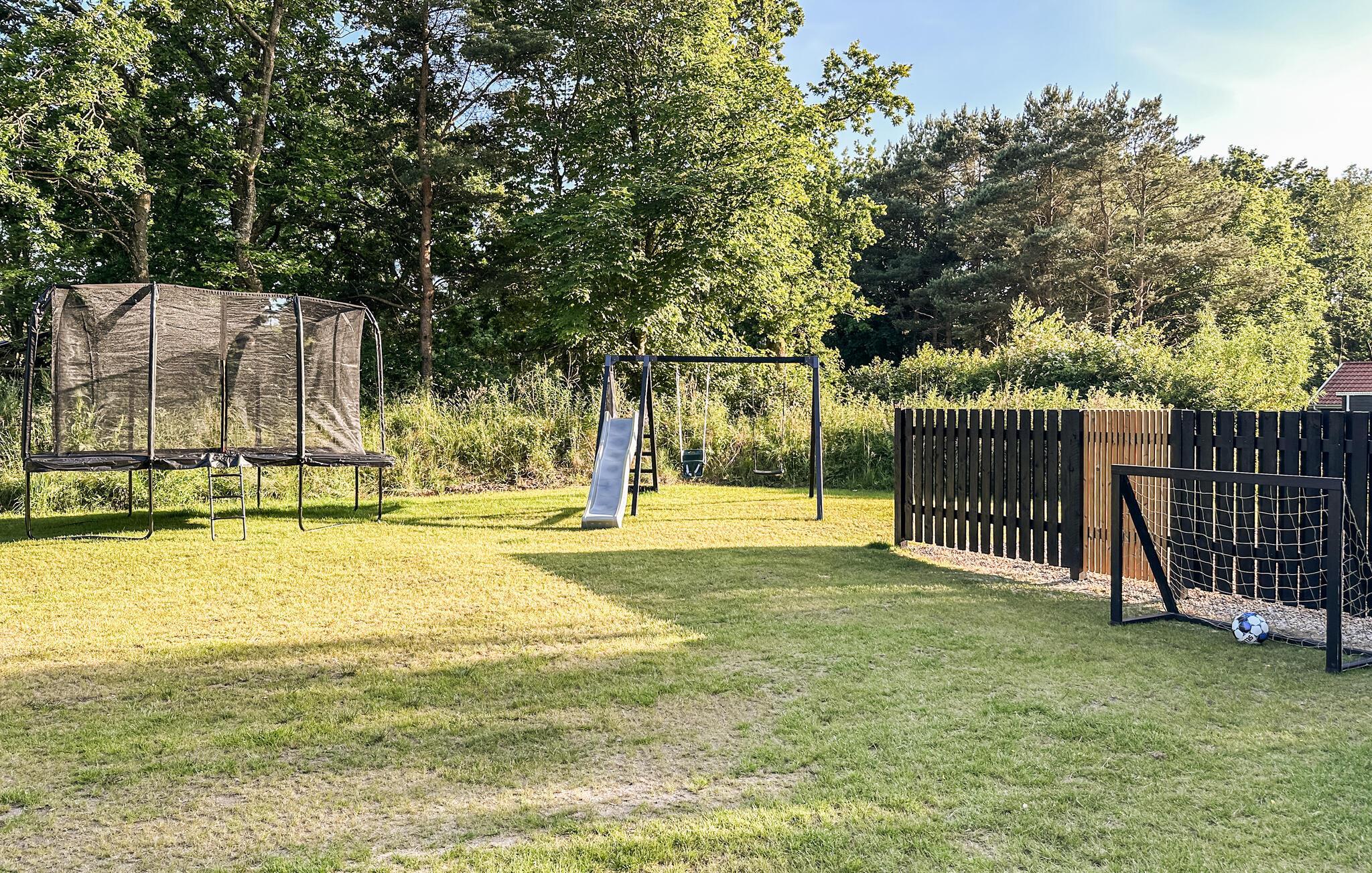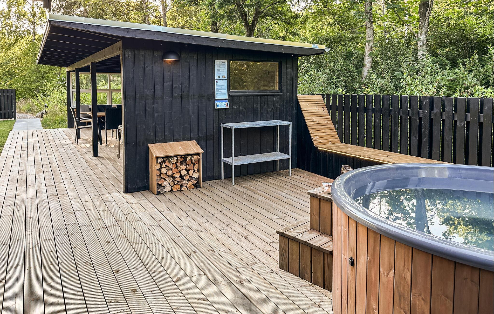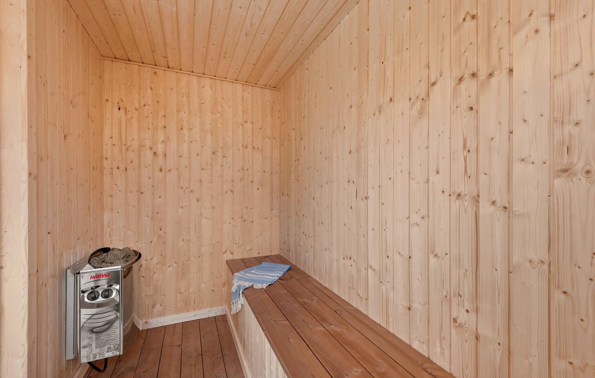 Udeområdet er tilsvarende lækkert. Her kan I sætte jer godt til rette på den store, overdækkede terrasse med en god bog eller et godt krydsord, mens børnene løber rundt og leger på den store grund. Skal I gøre det ekstra godt for jer selv, kan I nyde lidt god wellness i saunaen eller i vildmarksbadet under den stjerneklare himmel.