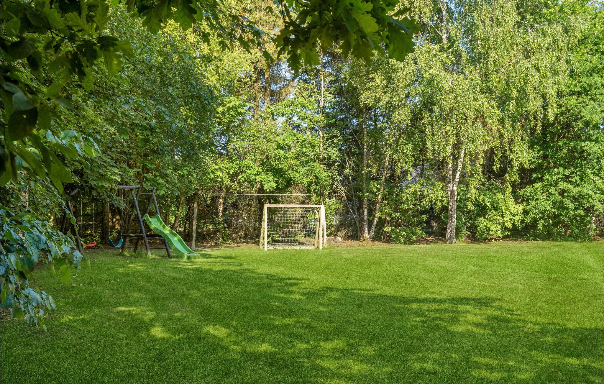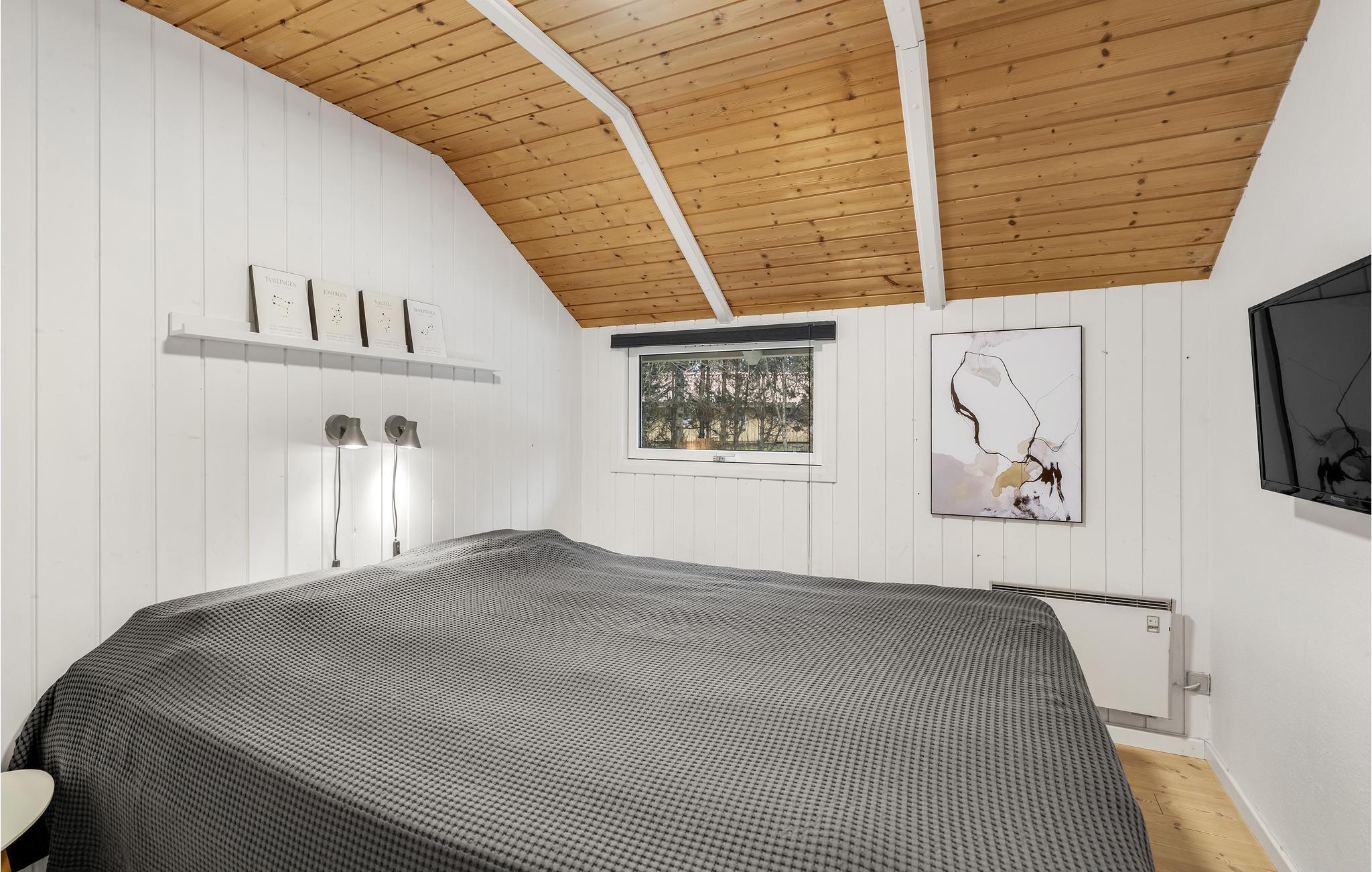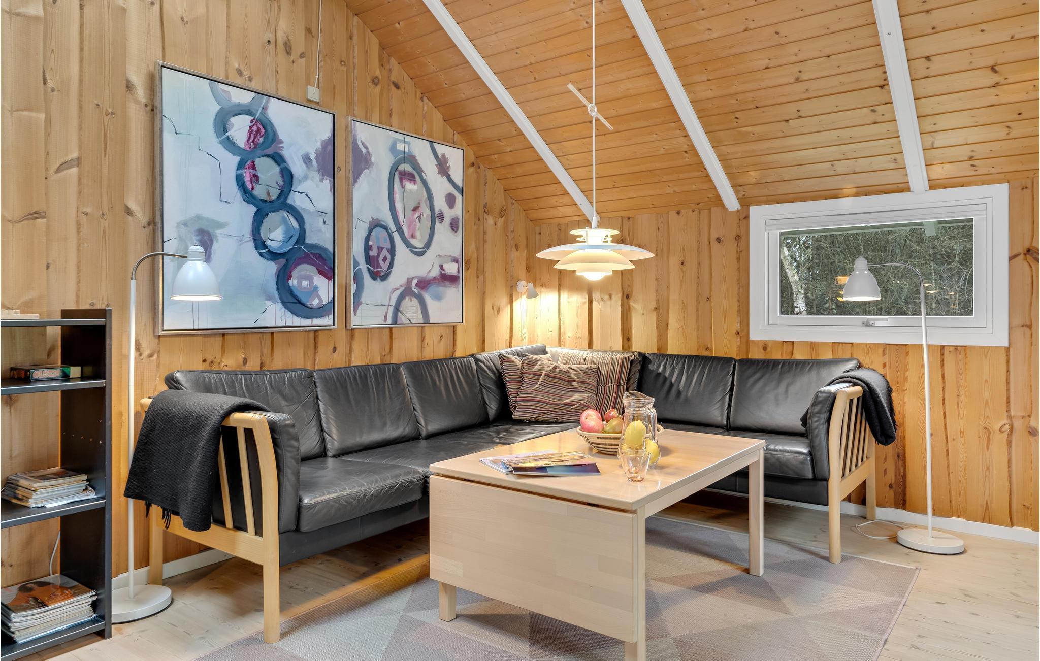 Velkommen på en dejlig, grøn grund, som omkranser dette hyggelige sommerhus. Her kan I holde jeres ferie i en hyggelig bolig, som er enkelt og stilrent og får en skøn varme fra trævæggene. Glæd jer til hyggelige aftener uden travlhed i opholdsstuen efter en lang dag på farten. Læn jer godt tilbage i sofahjørnet, mens ilden knitrer i brændeovnen på de kølige aftener.
