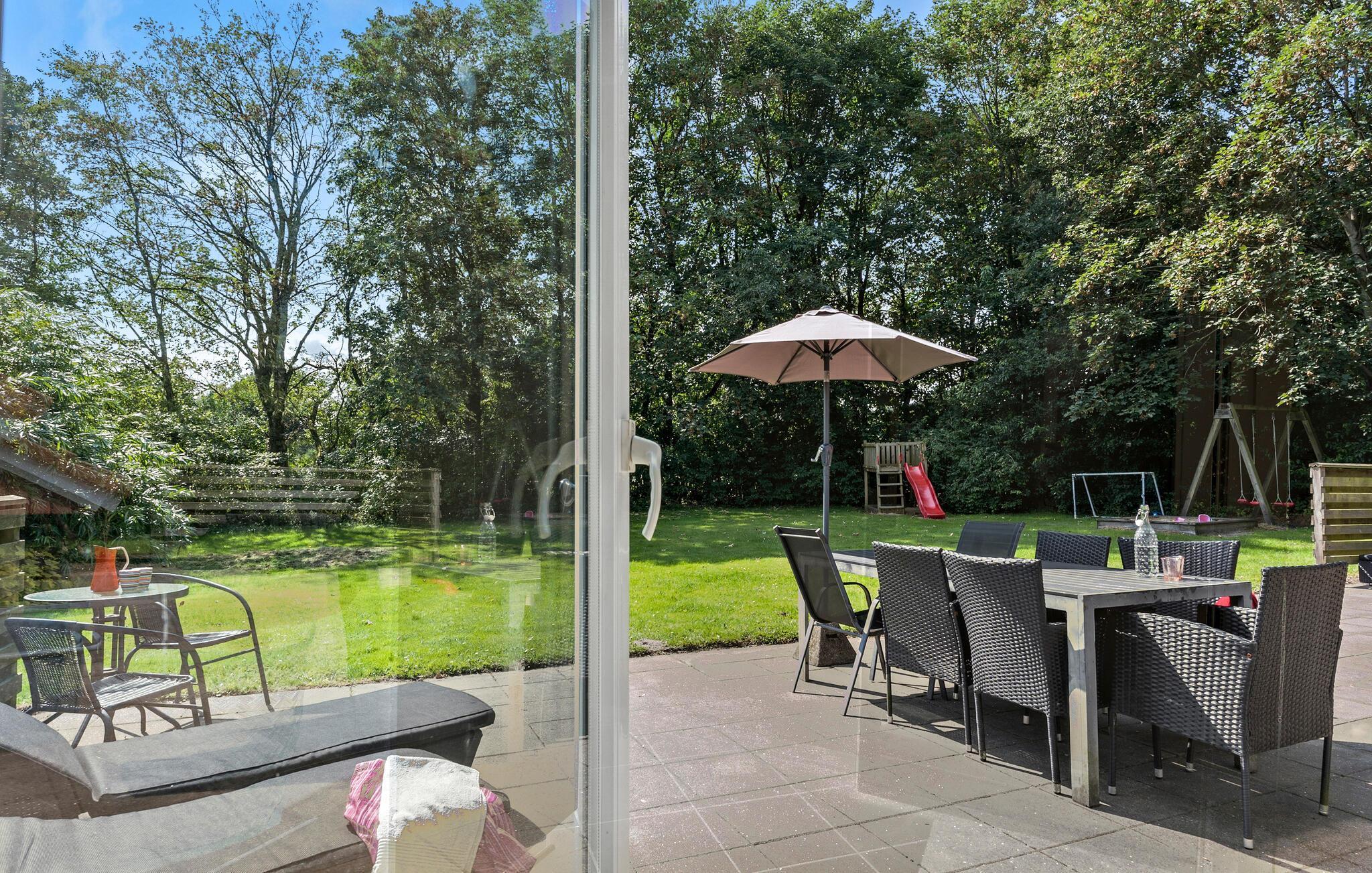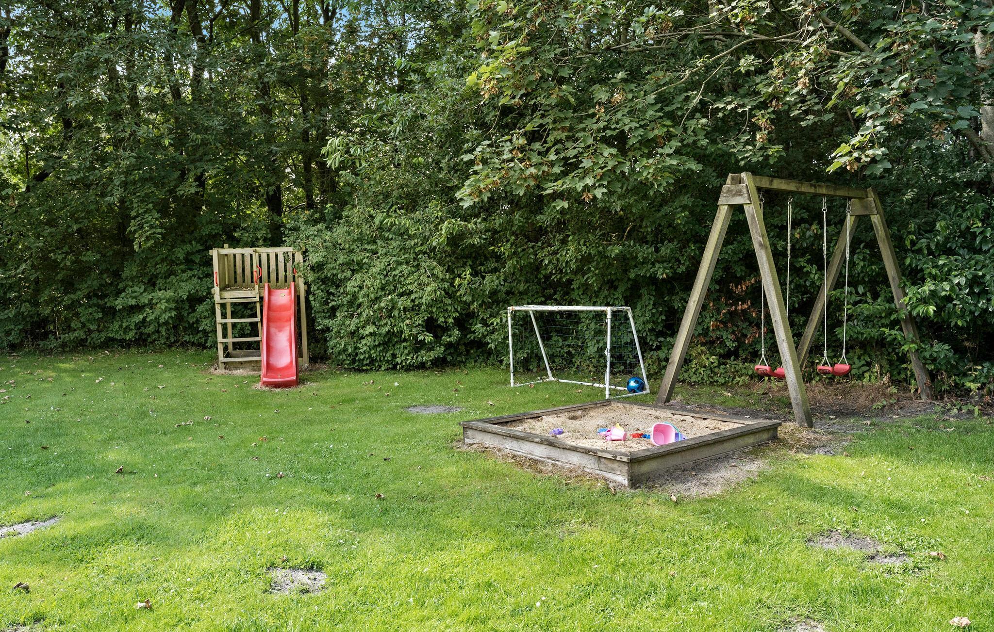Fra stuen er der udgang til en sydvendt terrasse, hvor I kan sætte jer til rette og nyde solen på de varme dage. Der er god plads til, at børnene kan boltre sig i den store have, hvor der både er gynger, rutsjebane og sandkasse. Hele familien kan også tage et spil fodbold og se, om I rammer et af de to opsatte mål. Der er dejlig ugenert i haven, som er afskærmet af store træer.