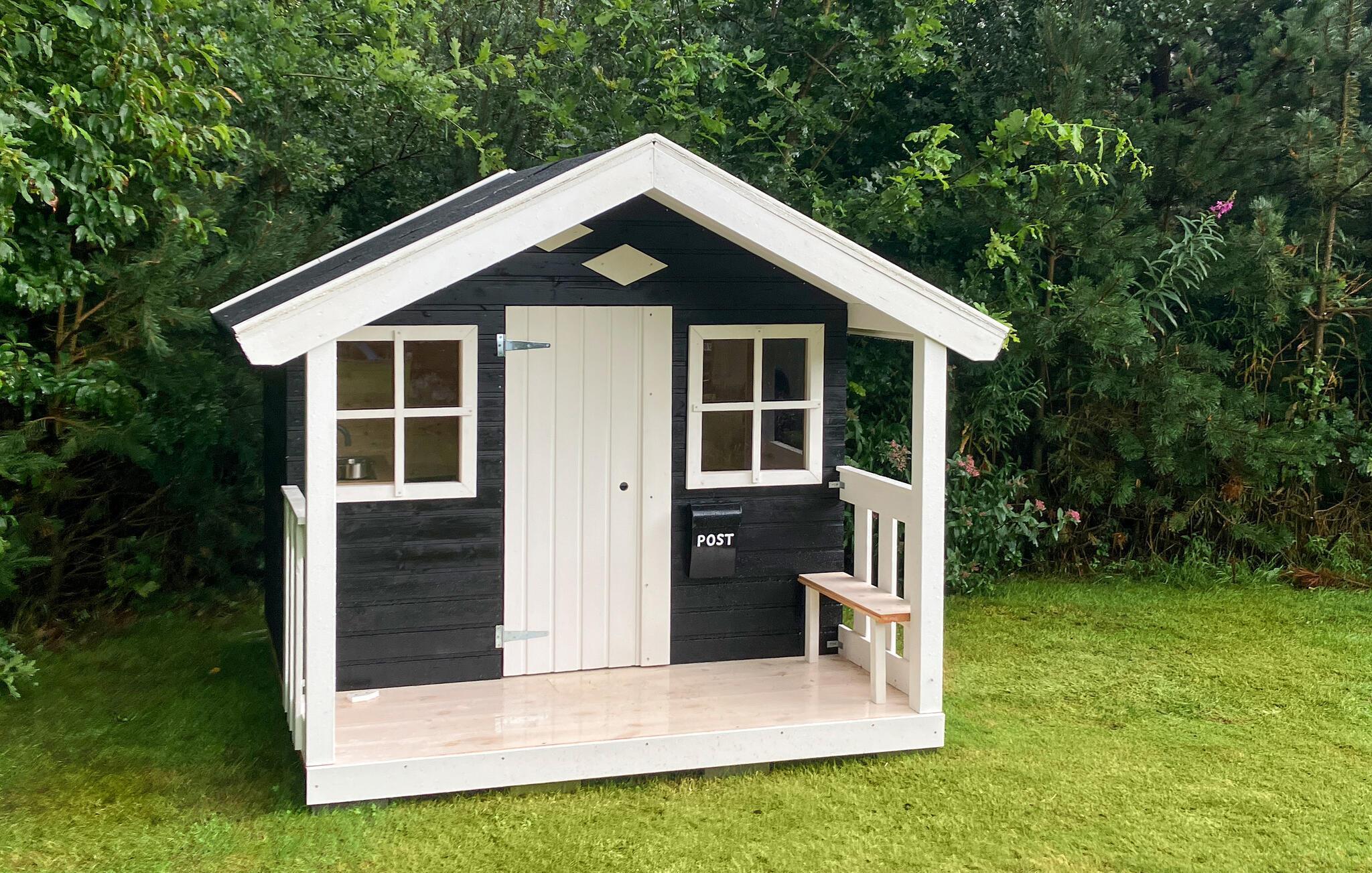 Hyggeligt træhus med stor have og brændeovn