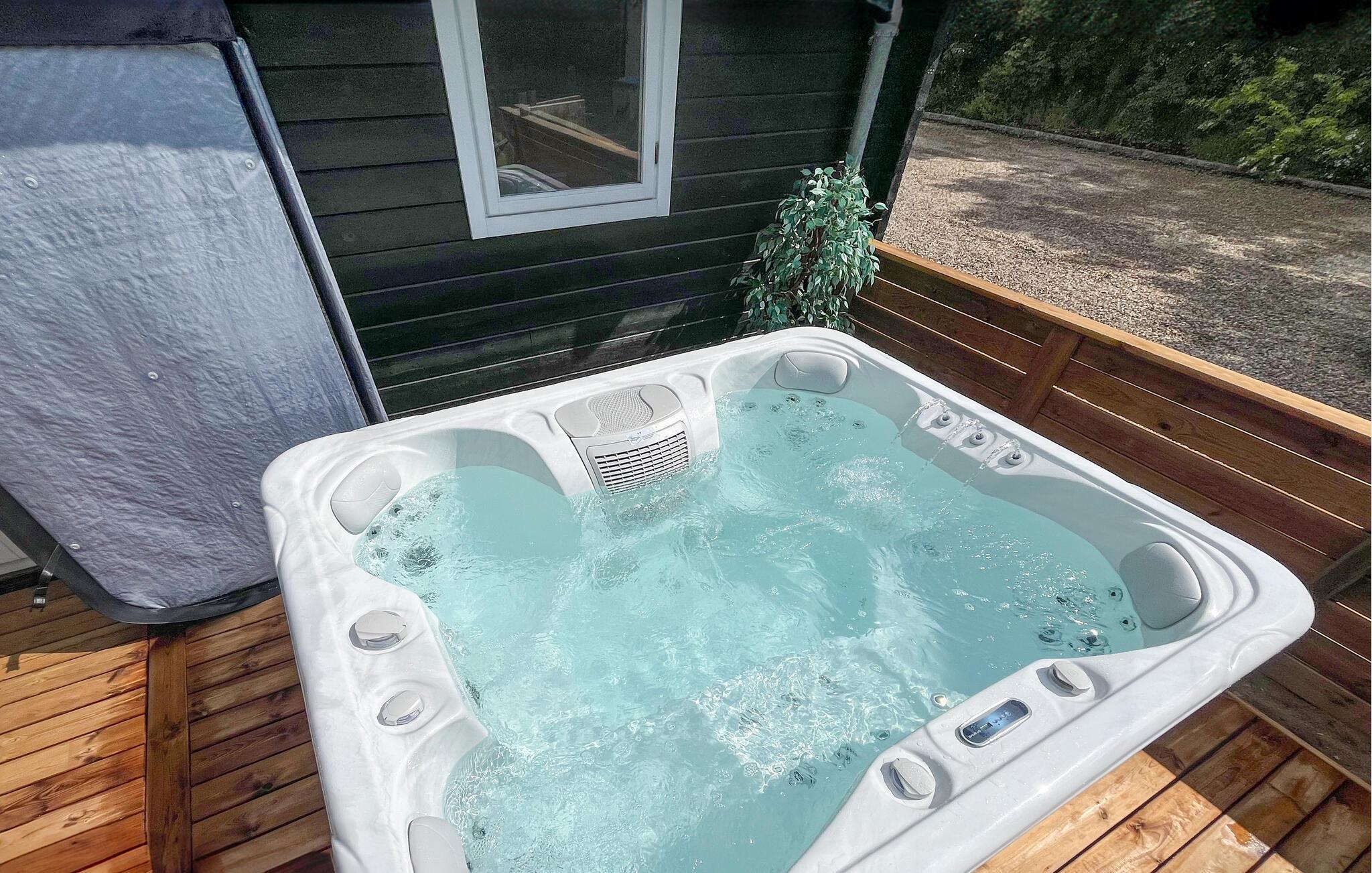 Udendørs er der også masser af muligheder for hele familien. Lad jeres børn lege trygt i den afskærmede have. Forkæl jer selv med afslappende øjeblikke i spabadet, og læn jer tilbage i de komfortable havemøbler på den overdækkede terrasse, før I tænder op i grillen til en hyggelig barbecueaften.