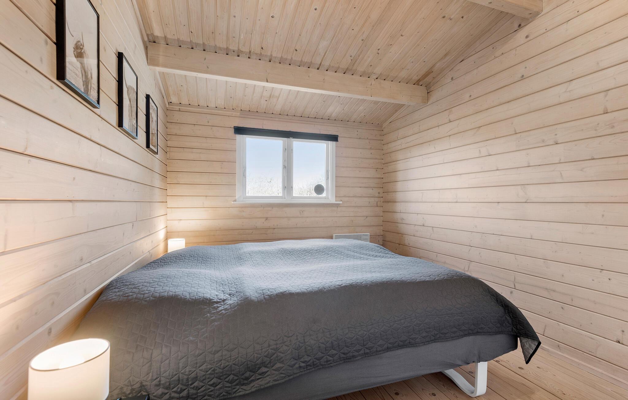 En hyggelig atmosfære med lyst træ og stilfulde møbler byder jer velkommen i dette feriehus. Tilbered jeres måltider i det moderne køkken, og nyd harmoniske stunder i det lyse spiseområde, mens brændeovnen sørger for ekstra hygge. Slap af med en god film på den komfortable sofa, eller læg fødderne op i den indbydende læsestol.