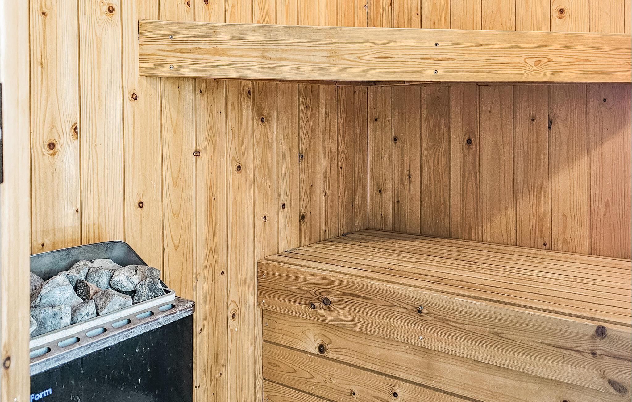 Dette skønne hus emmer af komfort og underspillet elegance. En lys stue med en komfortabel sofagruppe lægger op til hyggelige timer med at nippe til kaffe eller se tv. I det moderne køkken kan I nyde en madlavningsduel med familien og derefter nyde jeres måltid med et glas vin. På kølige dage inviterer saunaen jer til at slappe af i sin behagelige varme.
