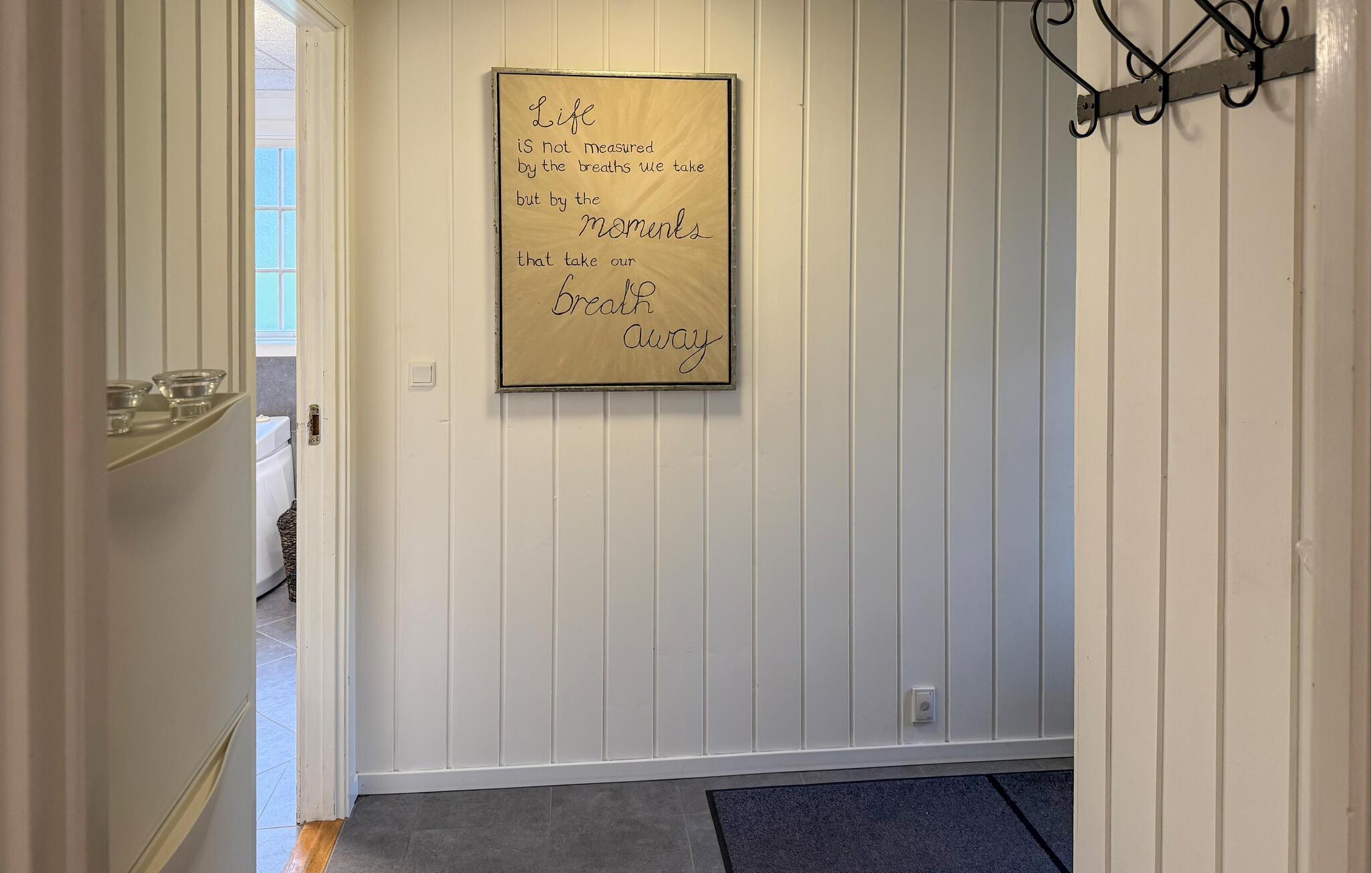 Velkommen til dette hyggelige hus, som er en dejlig ramme om nogle fredfyldte feriedage. Tænd op i brændeovnen efter en lang gåtur, læn jer godt tilbage i de bløde møbler med en god bog og nyd udsigten til haven gennem de store vinduer. Huset har en lang række fine detaljer med et personligt præg. Hvis I får lyst til en hyggelig aktivitet, er der både billard eller bordtennis.
