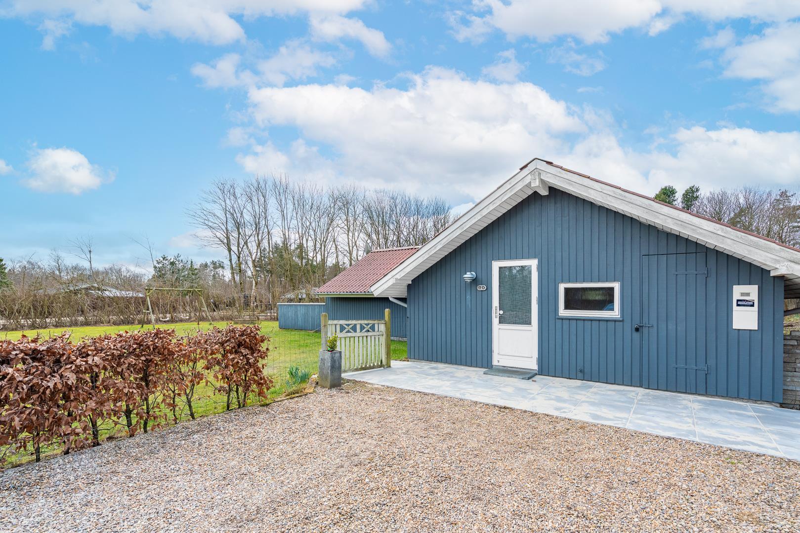 Udendørsarealet på Fyrrelunden 70 er som skabt til børnefamilier og hundeejere. Den indhegnede grund giver tryghed og frihed, så både børn og hunde kan lege frit. Til børnene er der gynge og sandkasse – perfekte rammer for timevis af leg.