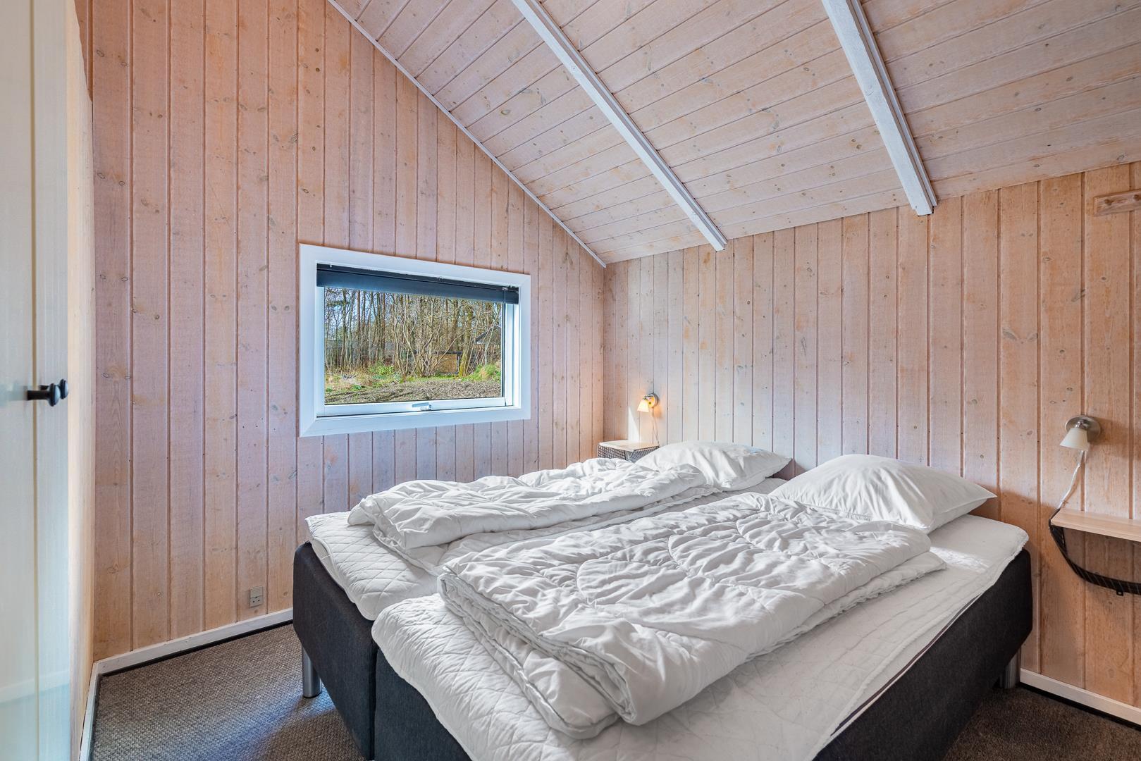 Sommerhuset byder på moderne og indbydende omgivelser med masser af plads til fællesskab og afslapning. De 4 soveværelser er fordelt på 3 med dobbeltsenge og 1 med to enkeltsenge – perfekt til både store og små.