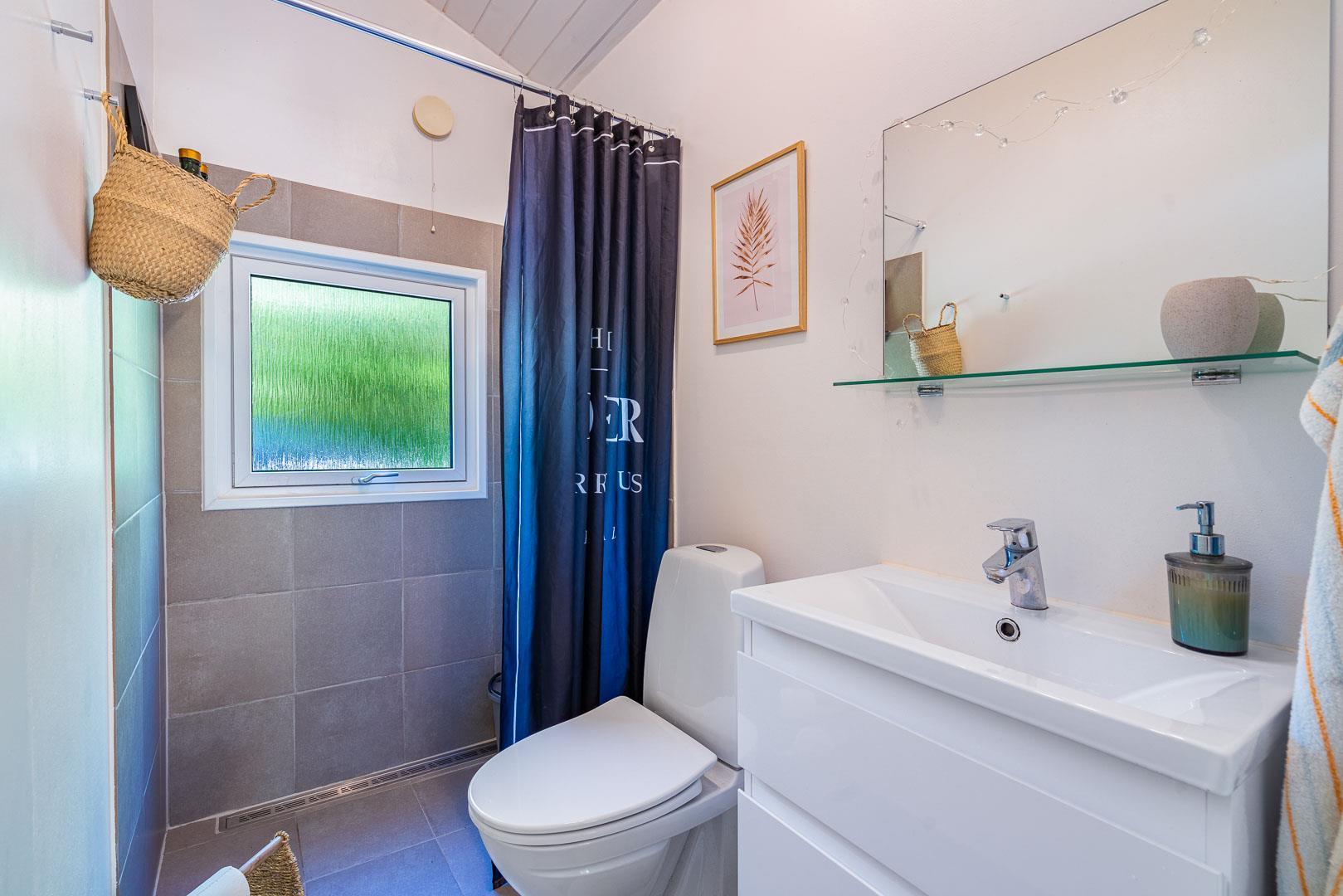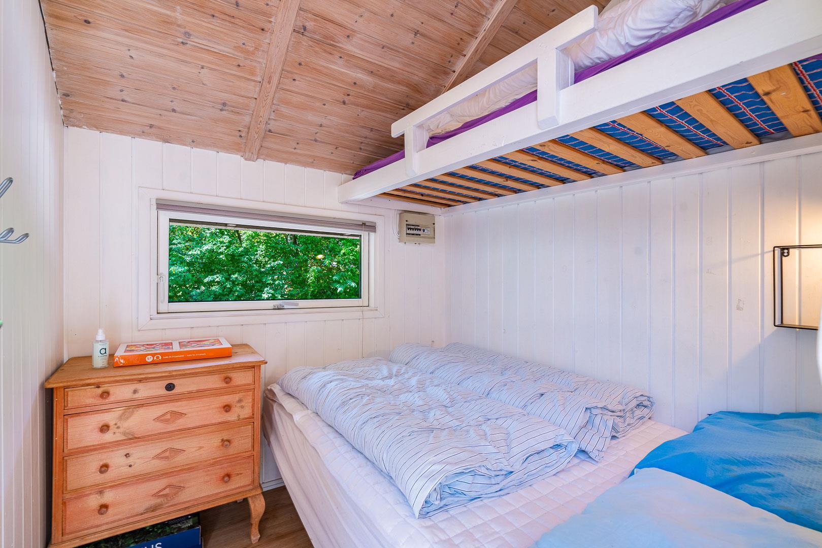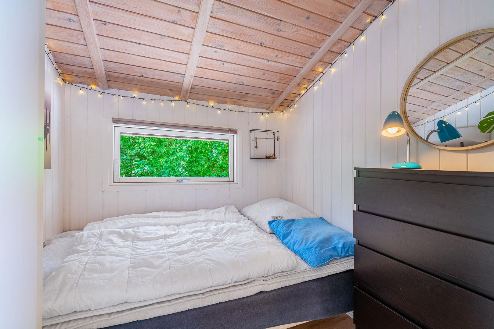 Sommerhuset har tre soveværelser, alle med dobbeltsenge, så der er god plads til både familier, par og bedsteforældre med børnebørn. Badeværelset har gulvvarme, så I kan starte dagen komfortabelt med varme fødder.