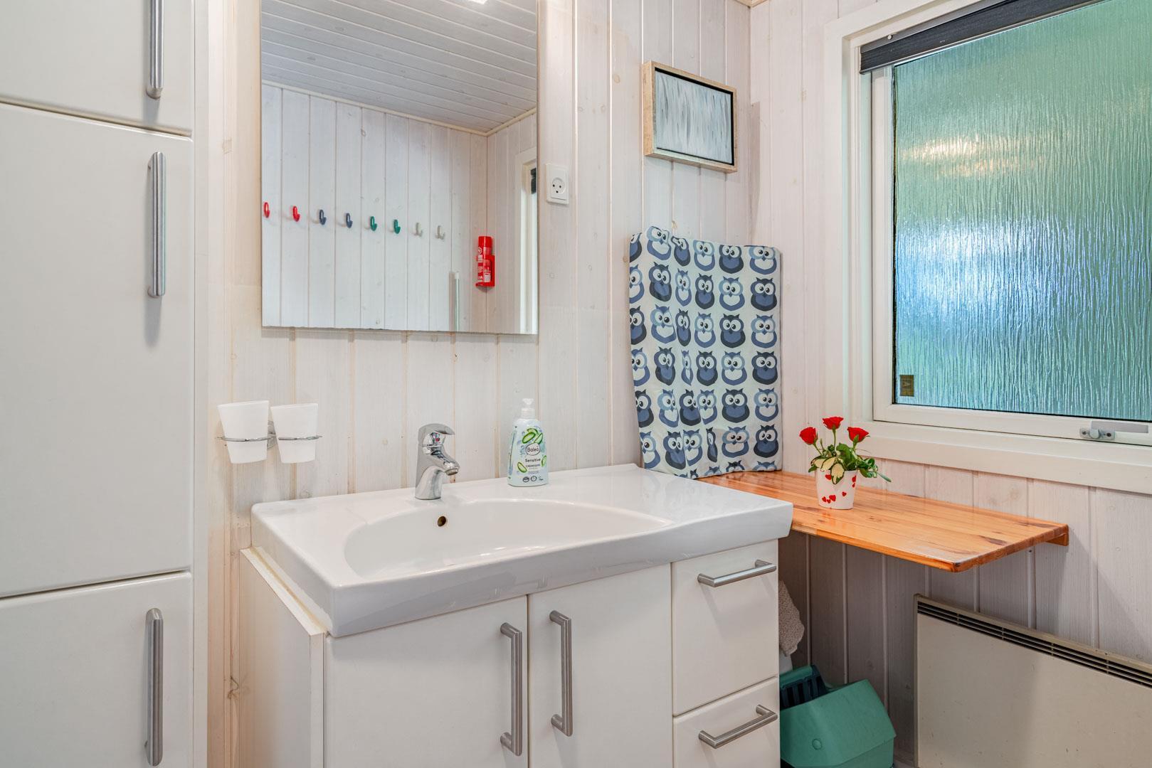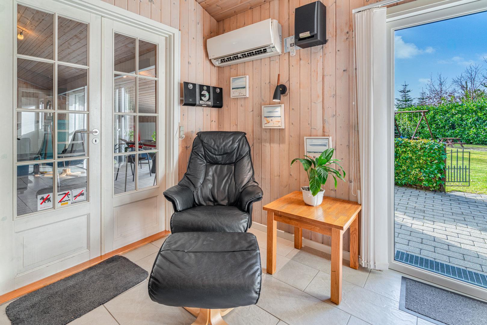 Den lyse og åbne stue med gulvvarme indbyder til afslapning. Tænd op i brændeovnen, se en film via Chromecast, og nyd den hyggelige atmosfære.