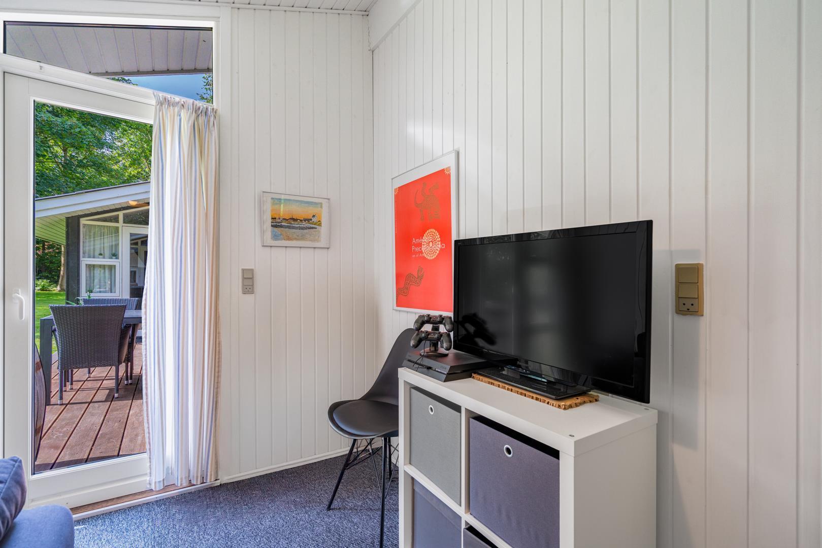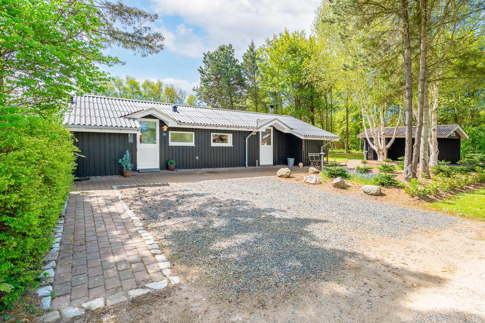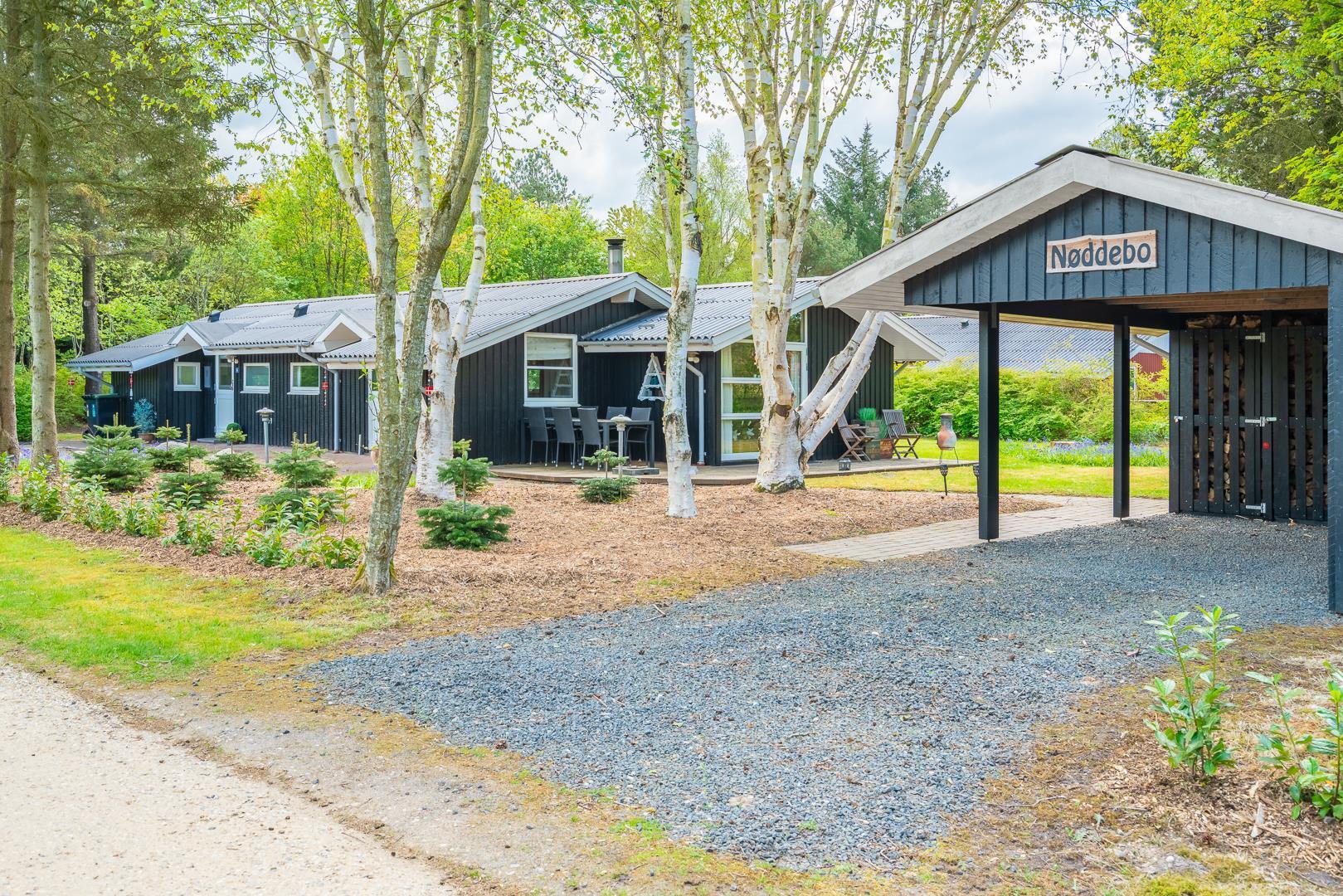 I kan opbevare cykler og strandudstyr i det tilhørende skur, og bilen står sikkert i carporten – praktisk i alt slags vejr. Beliggenheden på en stille sidevej betyder, at I kan nyde ferien helt uforstyrret og tæt på naturen.