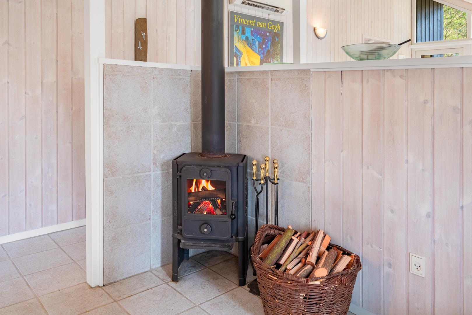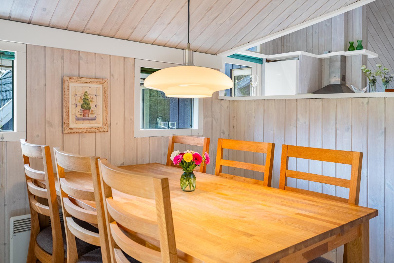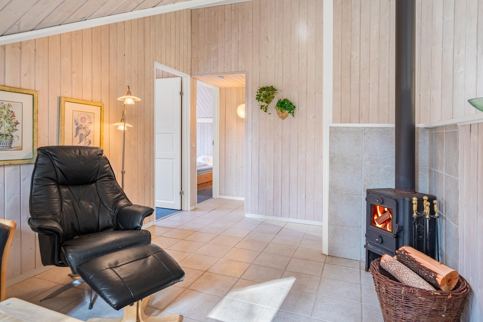 Huset på Hindbærvangen 10 byder på en god kombination af moderne faciliteter og ægte sommerhusstemning. Det åbne opholds- og spiseområde er husets naturlige samlingspunkt, hvor brændeovnen skaber varme og hygge efter en dag ved havet.