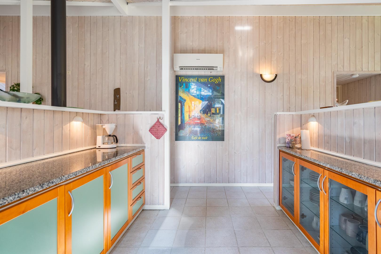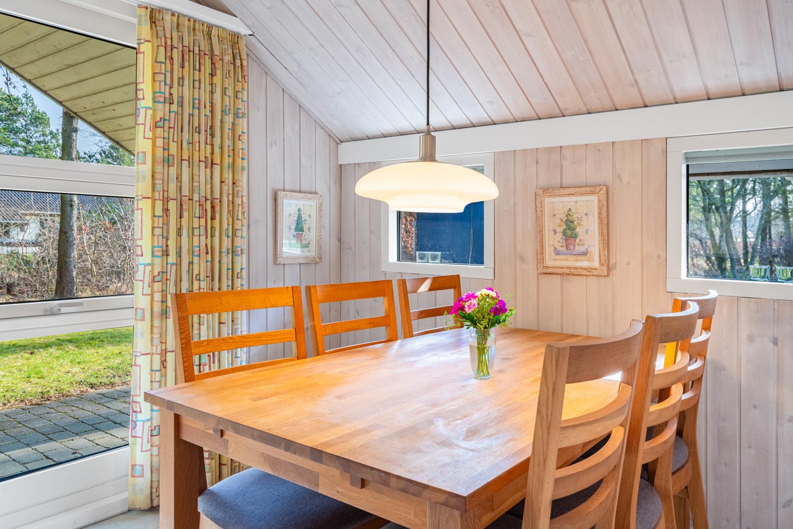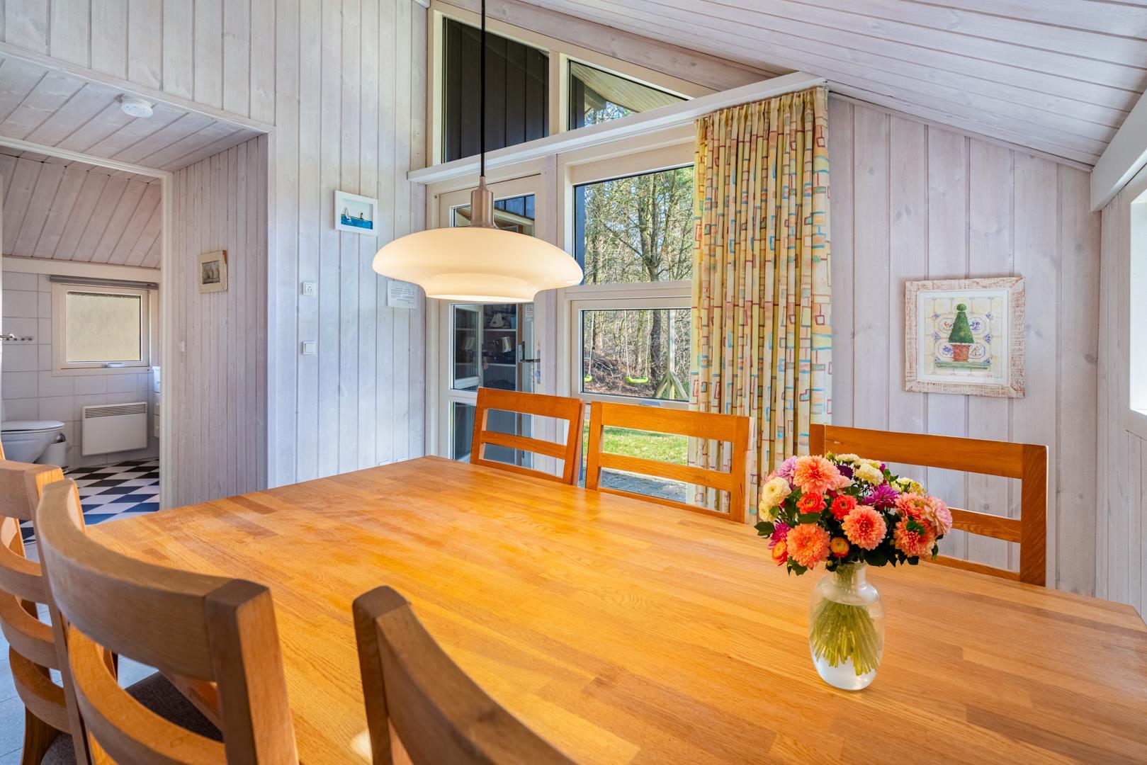 Huset på Hindbærvangen 10 byder på en god kombination af moderne faciliteter og ægte sommerhusstemning. Det åbne opholds- og spiseområde er husets naturlige samlingspunkt, hvor brændeovnen skaber varme og hygge efter en dag ved havet.