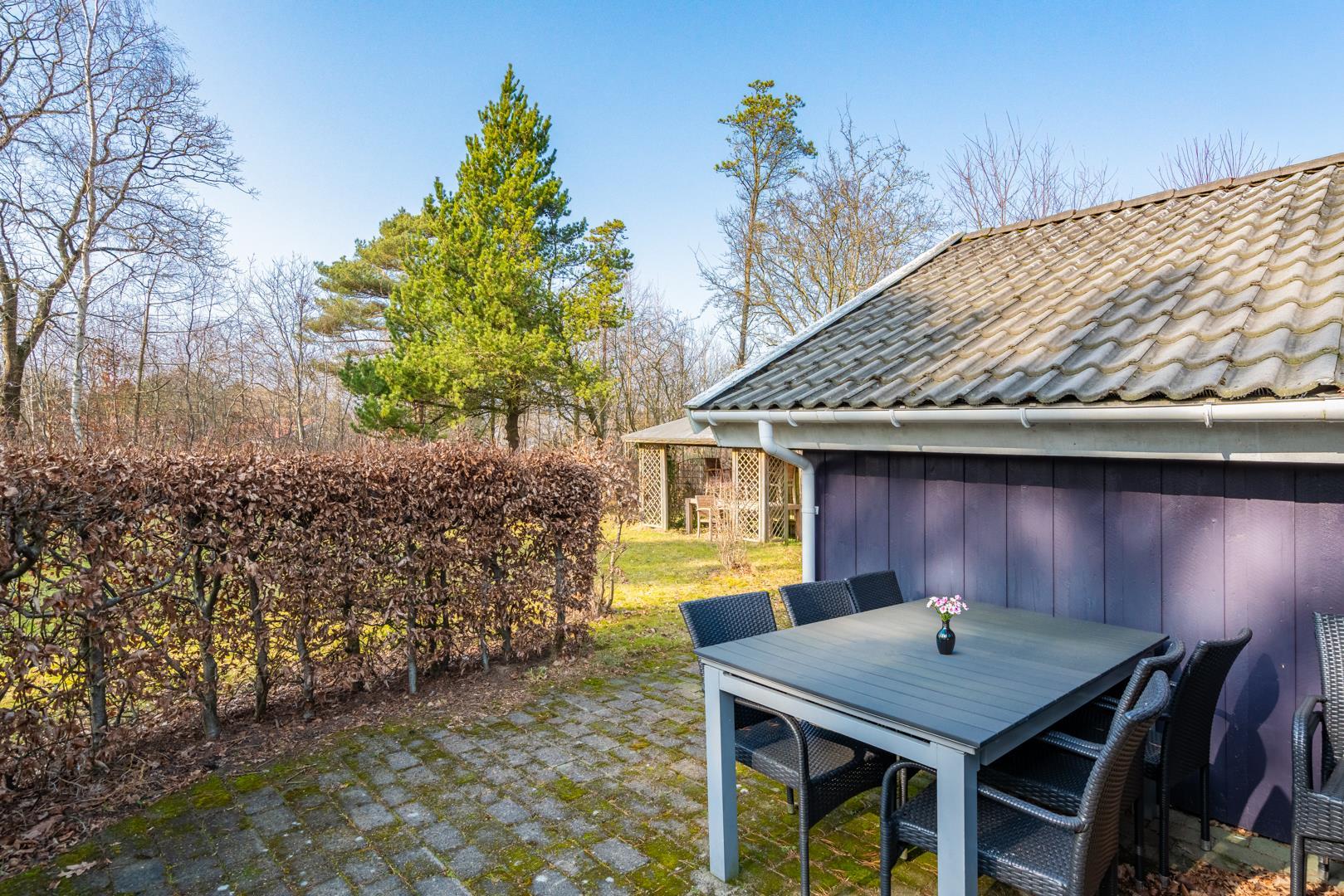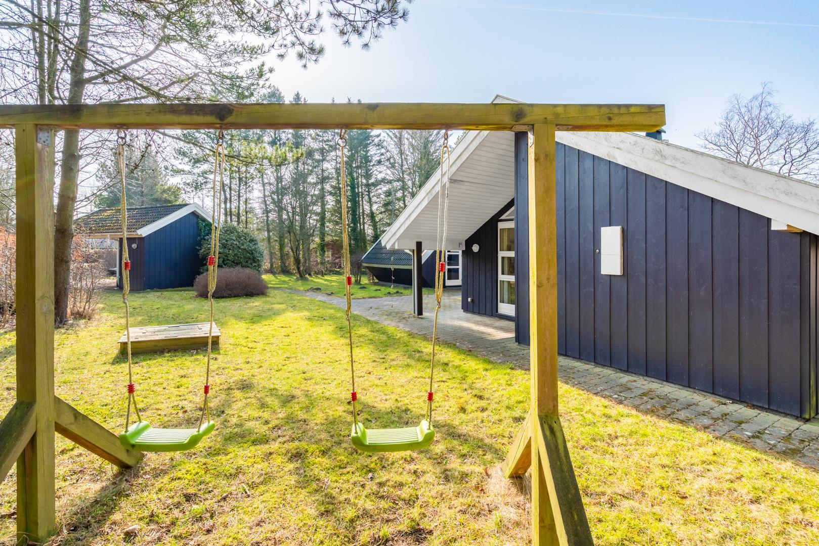 Udendørs venter en stor grund, hvor der er god plads til både leg og afslapning. Børnene kan more sig med gynger og sandkasse, mens du nyder solen på terrassen eller en stille stund i de rolige omgivelser.
