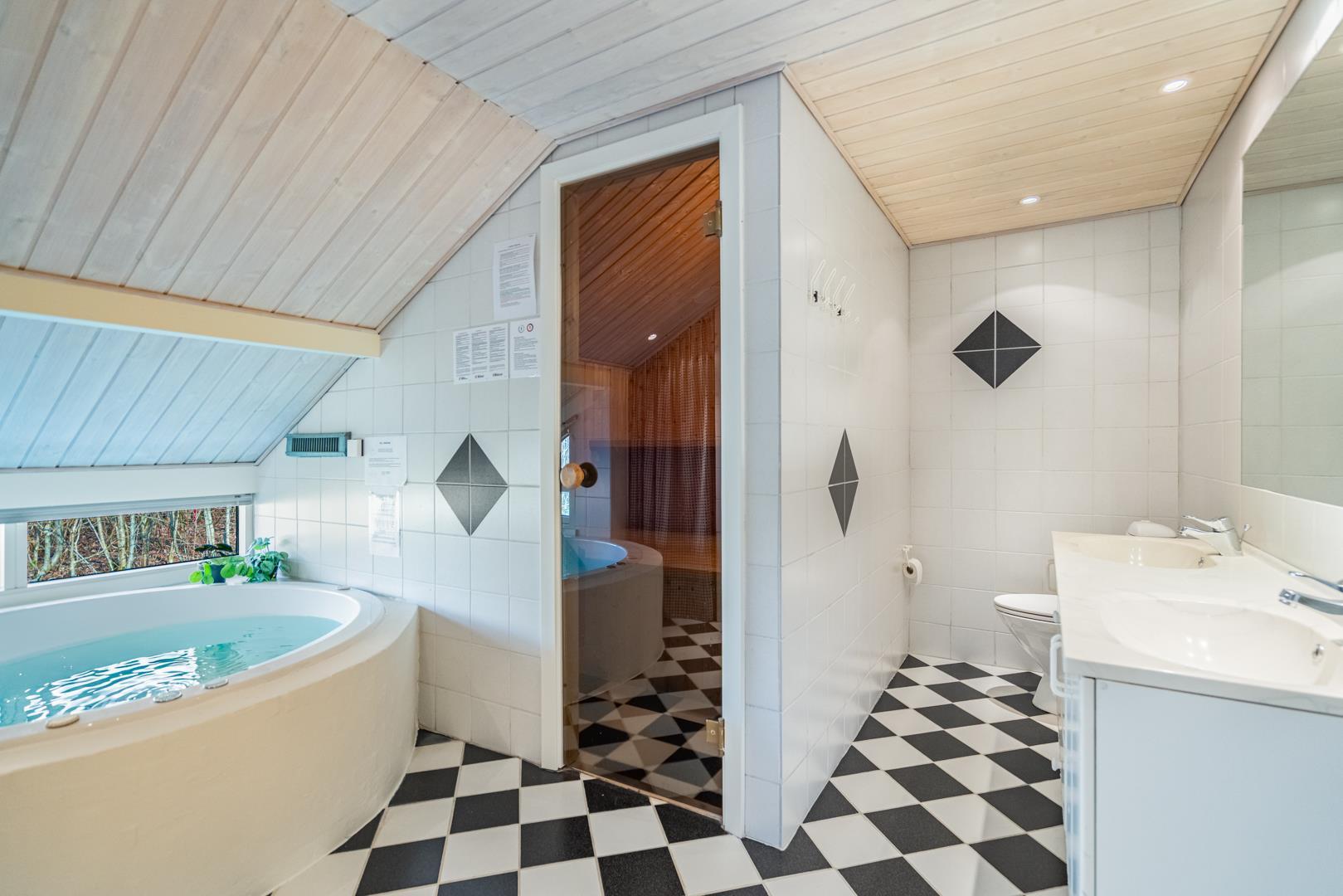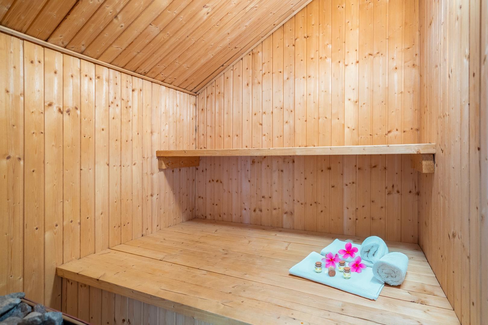 Efter en aktiv dag kan du forkæle dig selv i husets egen wellnessafdeling. Her kan du slappe af i saunaen eller nyde en rolig stund i spaen – perfekt til at lade op og finde ro.